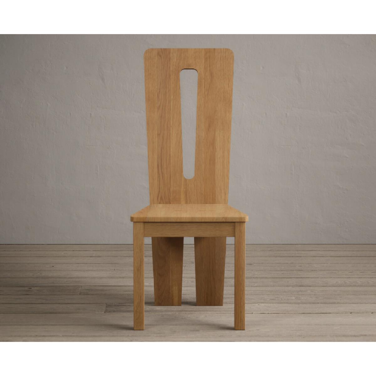 The Lucca Solid Oak Dining Chairs with Oak Seat Pad are crafted from 100% solid oak, with a curved floor length backrest with a cut out design and comfortable oak seat pad.