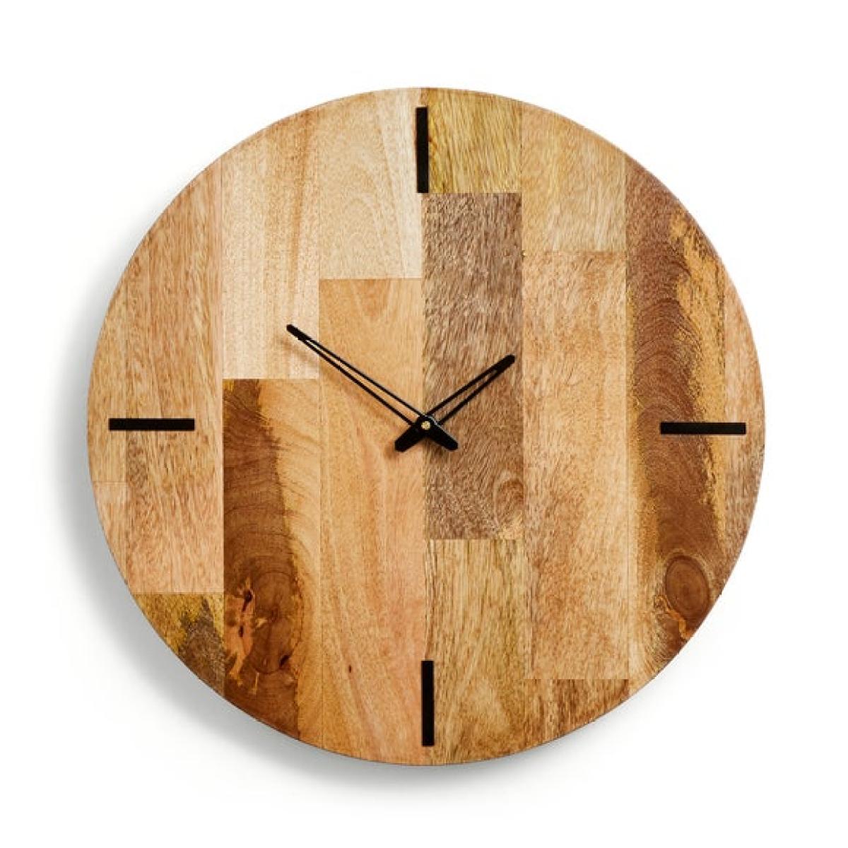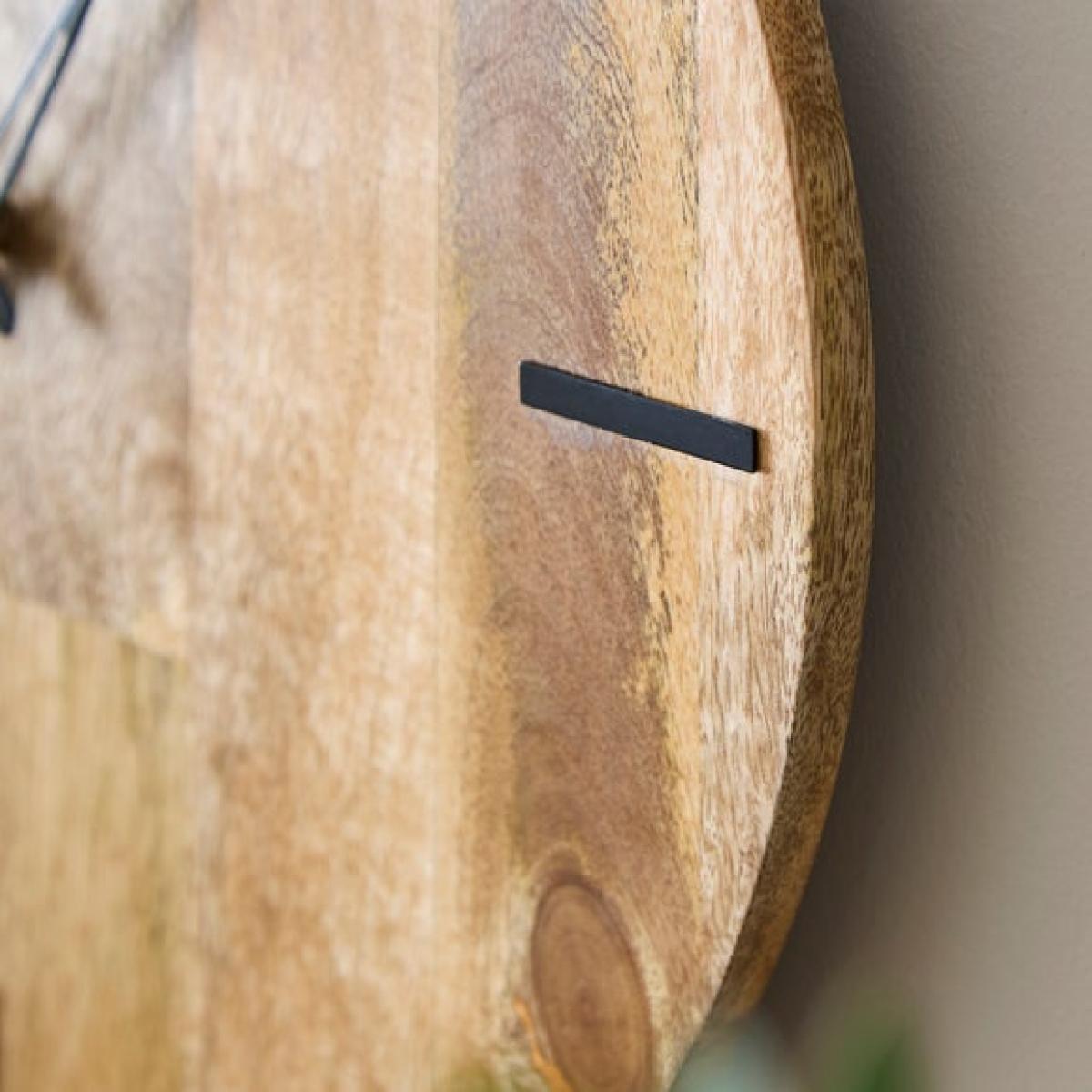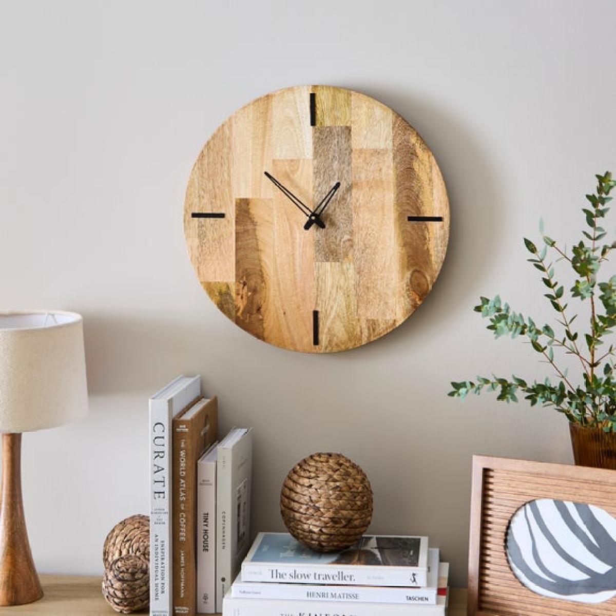 * Light coloured Mango wood * Black baton markings and hands * Simple, modern design * Great for Scandi interiors * Takes 1 x AA battery (not included) This round wall clock combines minimalist design with natural warmth and style. Made from real mango wood, the light finish brings a soft, Scandi-inspired feel to your space, and its round shape keeps the look clean and understated. Black baton hour markings and hands offer a sharp contrast, making it easy to read while maintaining a simple finish. Ideal for kitchens, hallways or living areas where you want style without fuss - a lovely decor piece that pairs effortlessly with modern, neutral interiors.