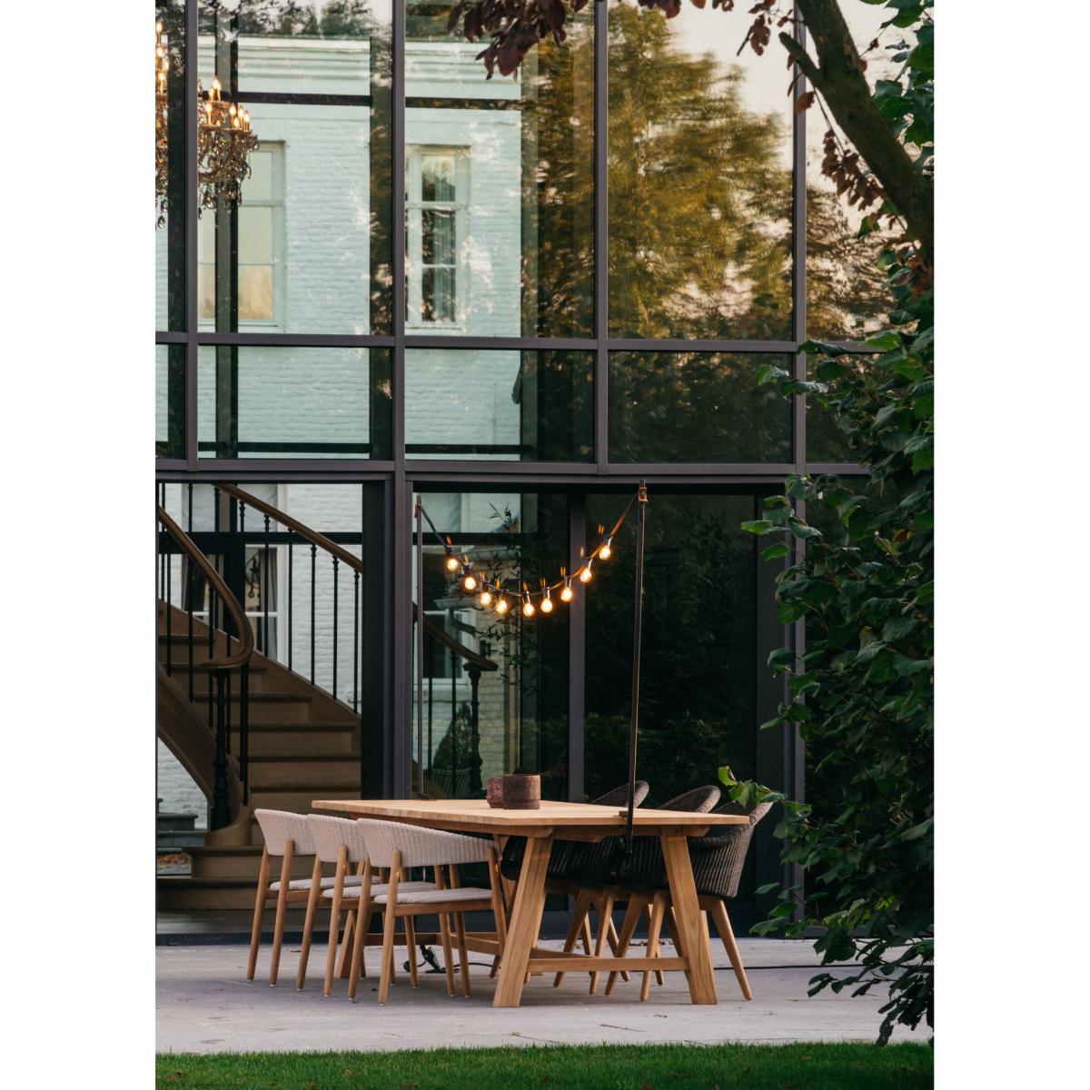 I love the Light My Table outdoor luminous garland for its versatility and simple yet effective design. It’s perfect for creating cosy outdoor spaces, whether for alfresco dining or casual gatherings. Its fixed fittings for tabletops make it easy to install and reposition, adding a warm glow without cluttering the setting. This piece works well in modern and minimalist exteriors, but it can also serve as a charming contrast in more rustic or eclectic gardens. When styling, consider pairing it with natural materials like wood or stone, and complement with outdoor furniture in neutral tones to let the lighting be the centrepiece. Its understated aesthetic makes it a practical and attractive choice for adding ambience and mood lighting to your outdoor areas.