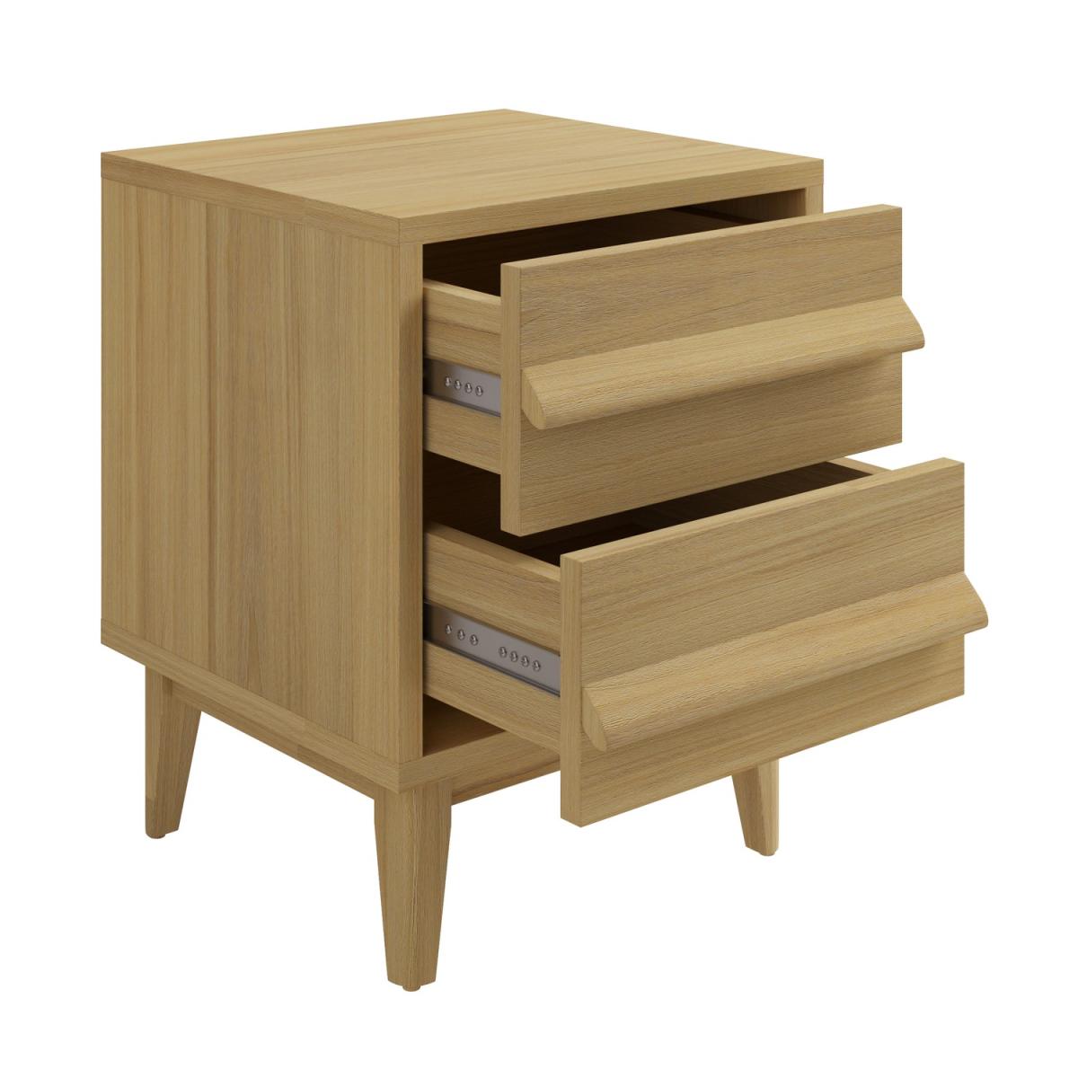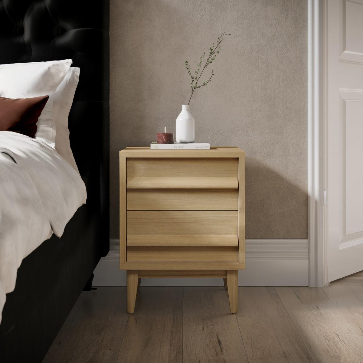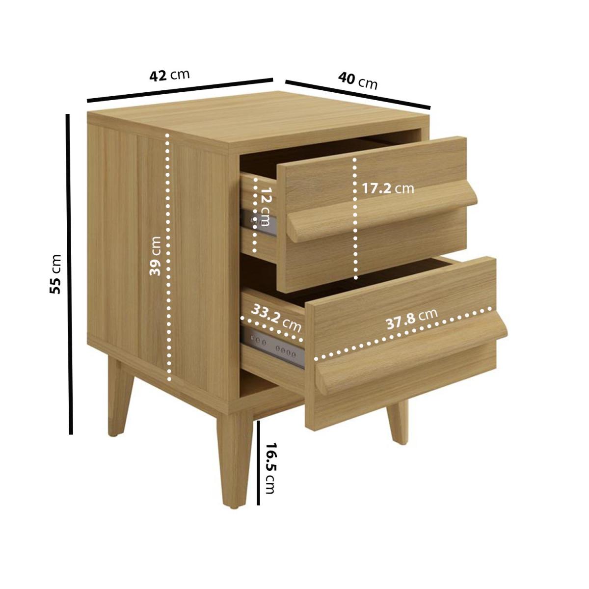 Offers ample storage for bedroom essentials like books, electronics, or personal items. Creates a warm and natural look, perfect for any bedroom decor. Features easy-glide runners for effortless opening and closing. Ideal for small spaces, guest rooms, or as a multipurpose storage piece. Constructed from high-quality materials for long-lasting use. Includes all hardware and instructions for a quick and hassle-free setup; just attach the legs. Transform your bedroom with the Askel Light Wood 2-Drawer Bedside Table, a perfect blend of Scandinavian-inspired design and practical functionality. The light wood finish exudes warmth and natural charm, while the minimalist design offers clean, contemporary lines that complement any interior style. With two spacious drawers, this bedside table provides the perfect storage solution for keeping your essentials organised and within easy reach. The smooth drawer mechanism ensures seamless operation, while its compact size makes it an excellent choice for small spaces or apartments. Versatile in its use, the Askel Bedside Table can also function as a chic side table in your living room or workspace. Dimensions: H55 x W42 x D40 cm Drawer dimensions:H12 x W30 x D33.2 cm Material: Wood Finish: Natural Colour:Light Brown Minimal Assembly required