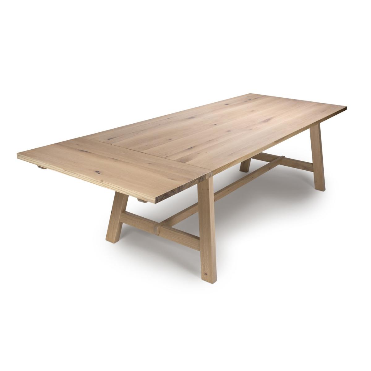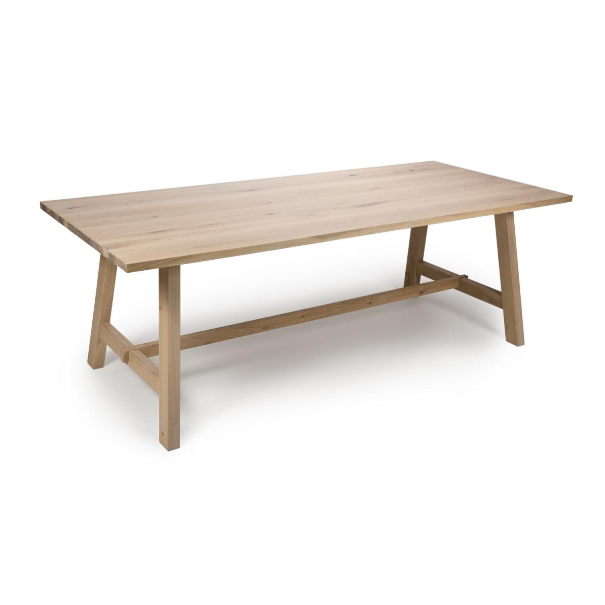 Dimensions W220 x D95 x H75 cmThe . Marshall dining table makes a stylish addition to any dining space. The sleek light oak top rests perfectly on the clean-cut modern legs with the essential central stretcher giving stability and style. Features. 220 Dining table seating 10-12 guests. Rustic oak veneer and; stone washed finish. Extension leafs available to increase seting by 1metre. Traditional Tressel Table styling. Strong stretcher for additional support. Contemporary styling. Assembly not required..