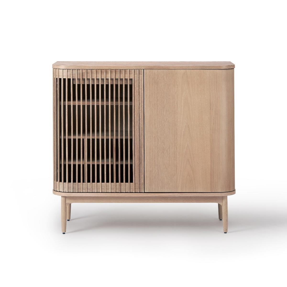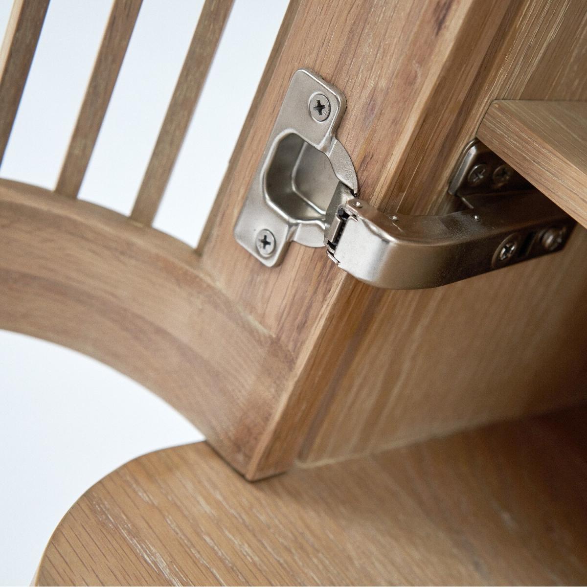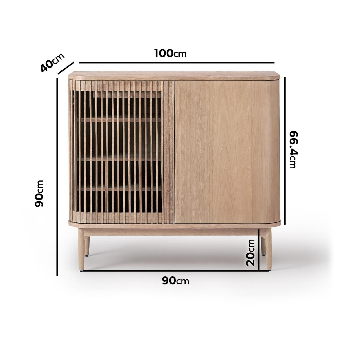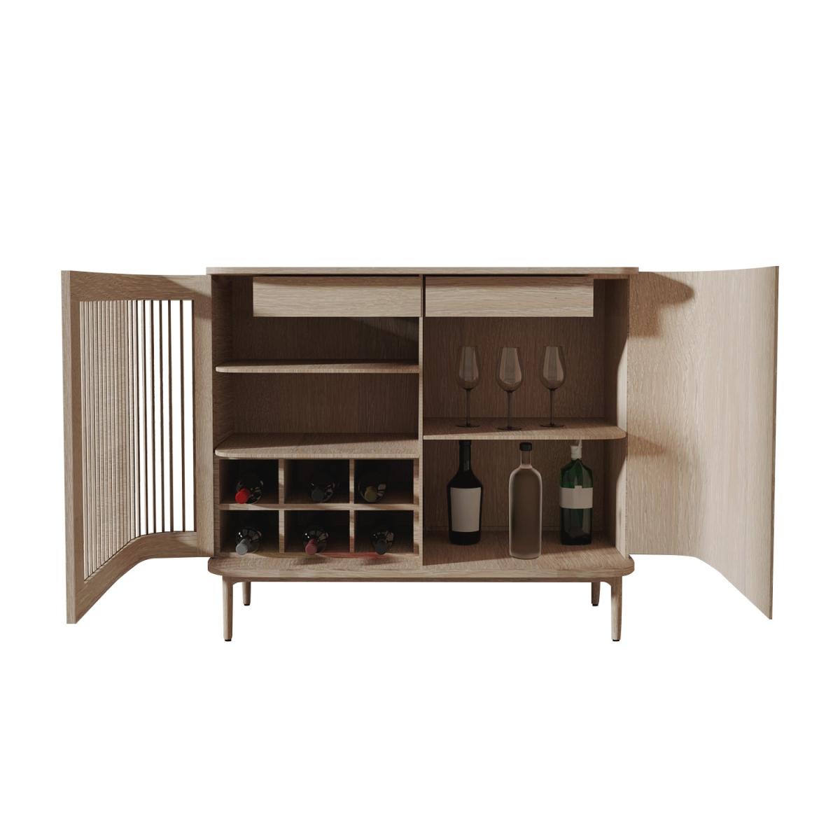 Add a touch of elegance to any room with this contemporary drinks cabinet which features a slatted design. Plenty of space to hold your entertainment needs and accessories. Made from oak veneer, oak door frames are finished in a limed lacquer while keeping the natural look from the oak grain.