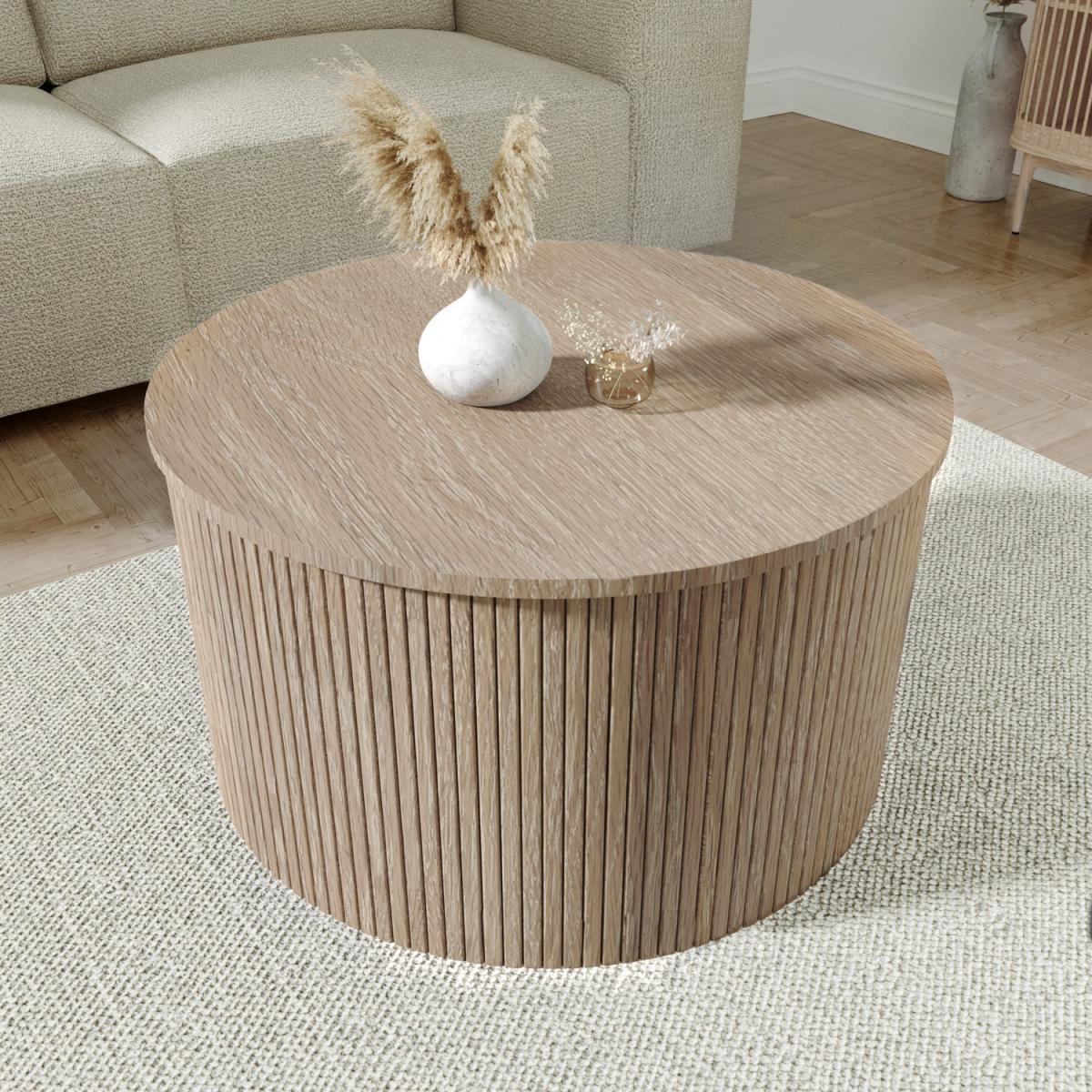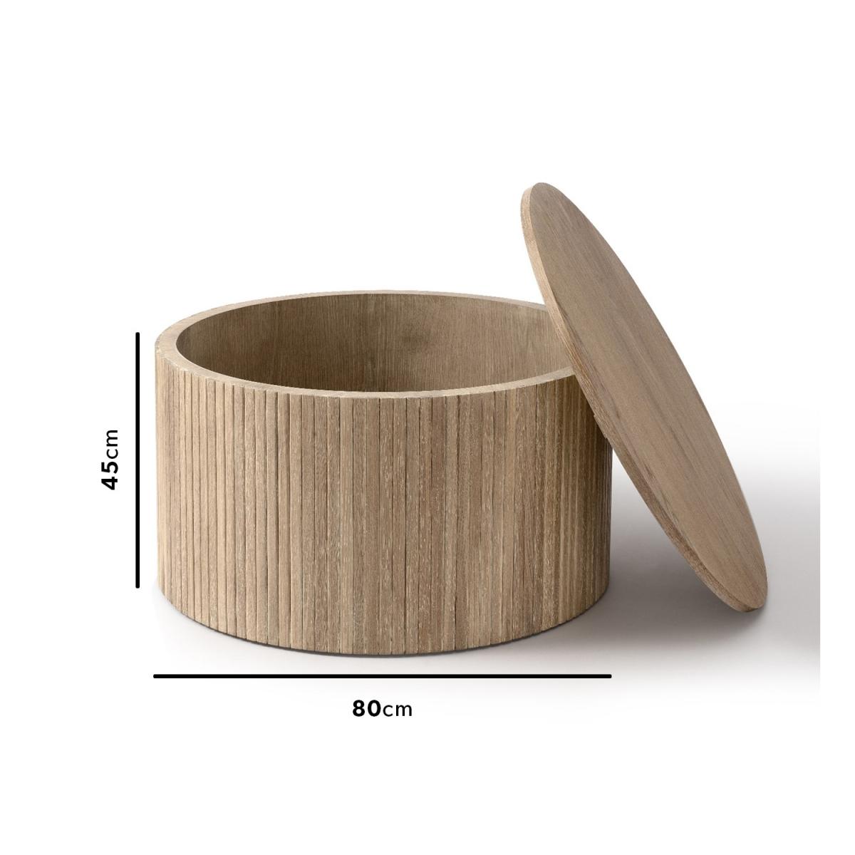 Features we love Solid oak coffee table with internal storage Stylish ribbed detailing covers the base Generous storage compartment is neatly concealed. Modern design suits any living room Discover the matching items in the Jarel range. All about me. Looking to upgrade your storage but not wanting to compromise on style? Then look no further than this solid oak coffee table with a stylish ribbed base. The large internal storage compartment is big enough to store your living room essentials in and with the added bonus of adjustable feet it’s perfect for keeping things level. With no assembly required simply place the lid on top and you’re ready to go. Need to know. Dimensions. H45 x W80 x D80 cm Internal storage dimensions. H40 x W71.8 x 71.8 cm Material. Light oak veneer and solid oak Finish. Lacquered Assembly required. No