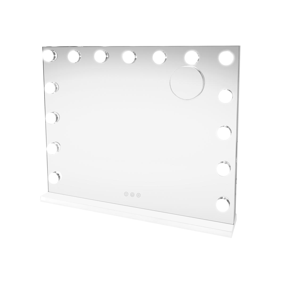 Transform your beauty routine with our LED Hollywood vanity mirrors, the perfect blend of elegance and functionality. Designed for both makeup enthusiasts and professionals, these versatile mirrors excel in makeup application, skincare routines, and hairstyling. Their sleek, modern frame is complemented by dimmable LED bulbs, enhancing any room with a touch of sophistication. Enjoy effortless control with touch-sensitive buttons that allow you to seamlessly switch the lights on or off, adjust brightness levels, and toggle between warm, cool, and neutral lighting modes according to your preferences. Perfect your makeup details effortlessly with the detachable 10x magnification mirror. Its suction design allows flexible placement, ensuring you achieve flawless results with precision and ease. Immerse yourself in your favourite music or podcasts while you prepare for the day. The built-in Bluetooth speakers provide clear, high-quality sound, enhancing your beauty routine with a touch of entertainment. Even when the lights are off, you can continue to enjoy uninterrupted audio, making your morning routine or evening ritual a truly captivating experience. Stay connected and charged with convenience. The mirrors feature two USB ports - USB-A and USB-C - allowing you to charge multiple devices simultaneously. Whether it's your smartphone, tablet, or other accessories, you can keep them powered up for seamless use throughout your beauty routine. Built with high-quality materials, these vanity mirrors are designed to last. Their sturdy base and secure wall-mounting option ensure added stability and durability. Keep your mirror spotless with the included microfibre cleaning cloth. Designed for delicate surfaces, it effectively removes smudges and dust, ensuring your mirror stays pristine. Make every day a glamorous one with our LED Hollywood vanity mirrors.