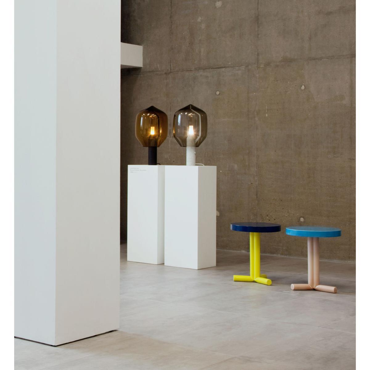 When designing for Established & Sons and Venini, Ronan and Erwan Bouroullec's idea was to light up a voluminous round glass structure that would be balanced on a delicate aluminium support. Drawing attention to the precariousness of the equilibrium Ronan and Erwan wanted to present the vulnerability of the object. What was also interesting to them was the mix of techniques to make the three elements that craft this lamp: the base and the support are industrially made in opposition to the hand-blown glass which uses traditional artisan skills.