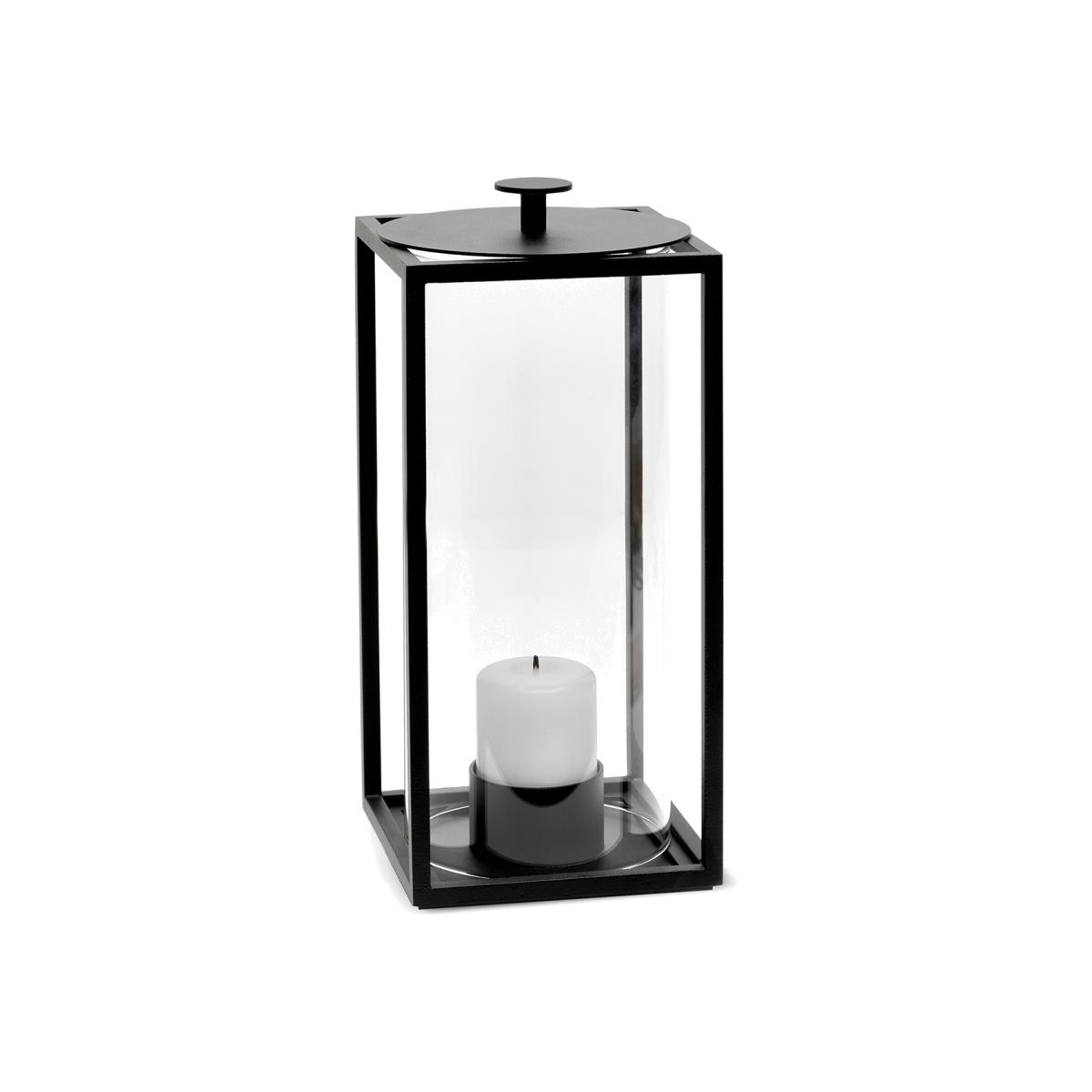 The Light'In lantern small from the Danish brand By Lassen is a decorative and functional storm lantern with a truly stylish design. The round glass insert creates an elegant contrast alongside the rectangular metal frame — a thematic motif of counterpoint that is pervasive in By Lassen's design aesthetic. The lantern can be used with an LED light, block candle, or a large tea light. The Light'In lantern was designed by Søren Lassen and can be used both indoors and outside.