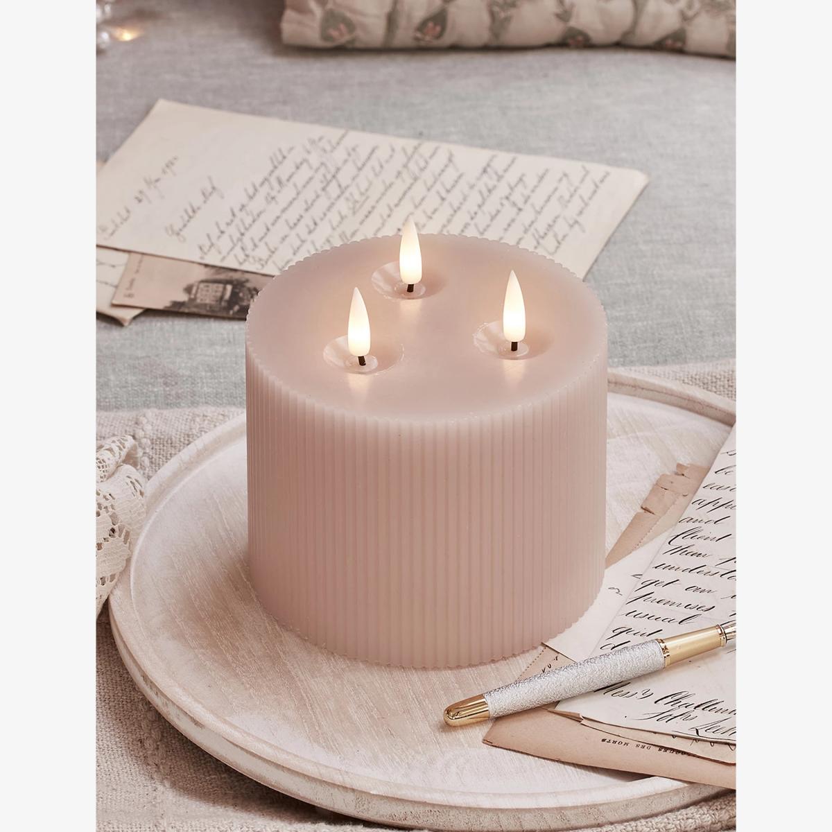 I love this wax light-up candle in blush pink for its contemporary yet cosy vibe. Its three-wick design creates a balanced, inviting glow that's perfect for adding warmth to living rooms, bedrooms, or even bathroom spaces. It works particularly well in Scandinavian-inspired or minimalist interiors thanks to its soft colour and clean silhouette, but equally adds a subtle touch of elegance to more traditional or eclectic spaces. Practical styling tips include placing it on a marble or wooden tray alongside other neutral-toned accessories to create a calming vignette, or using it as a centrepiece on a dining table to add a relaxed yet sophisticated atmosphere. Its flickering light also makes it a great alternative to real flames, offering a safe, stylish way to introduce ambient lighting.