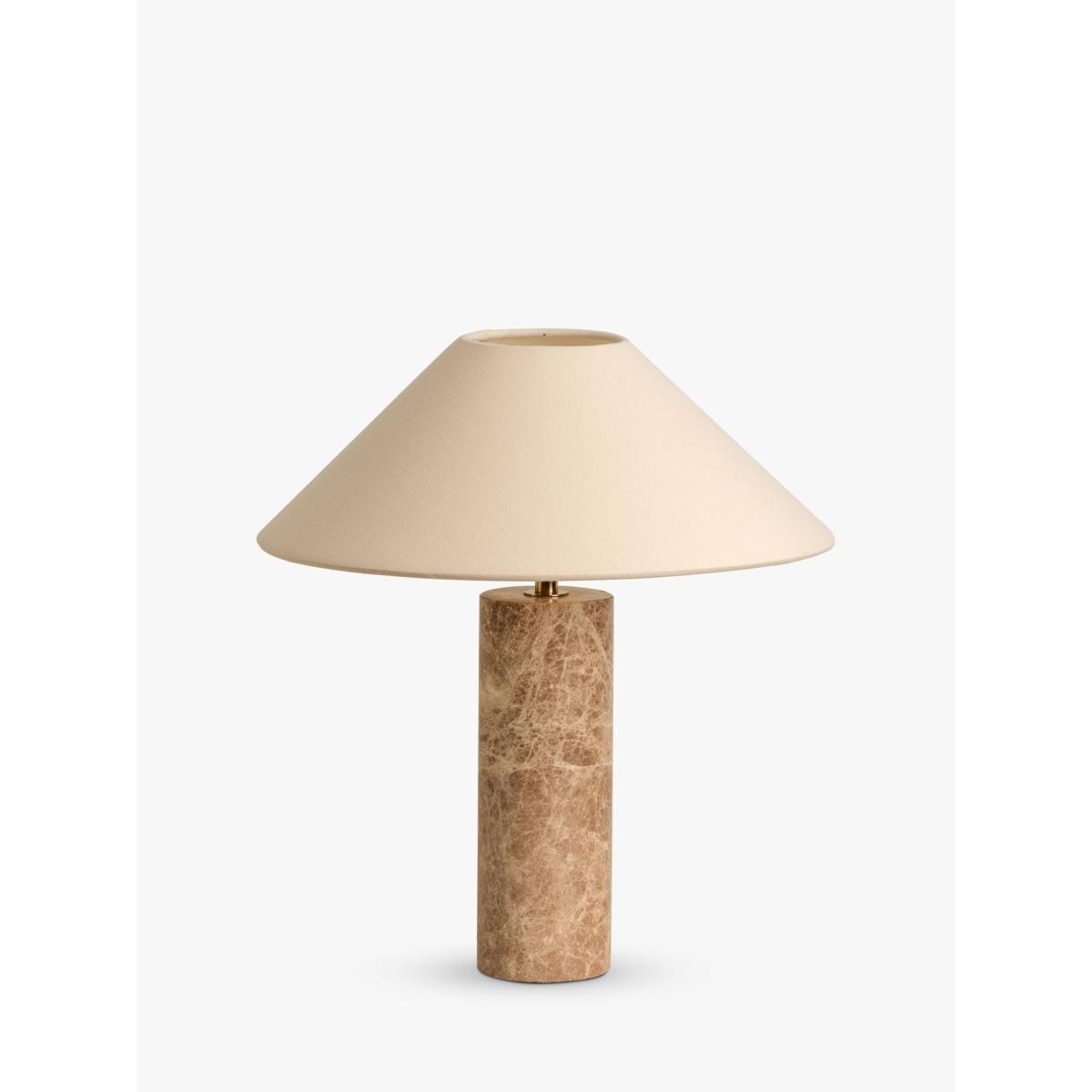 I really like this lamp because of its clean, contemporary design combined with natural materials. The marble base adds weight and texture, making it suitable as a statement piece in both modern and transitional interiors. It works well on bedside tables, sideboards, or in a reading corner, where its warm brown tone can complement neutral palettes or add depth to more colourful schemes. For styled looks, consider pairing it with soft textiles or metallic accents to elevate the overall aesthetic. Practical tip: use a warm LED bulb to highlight the natural beauty of the marble and create a cosy atmosphere.