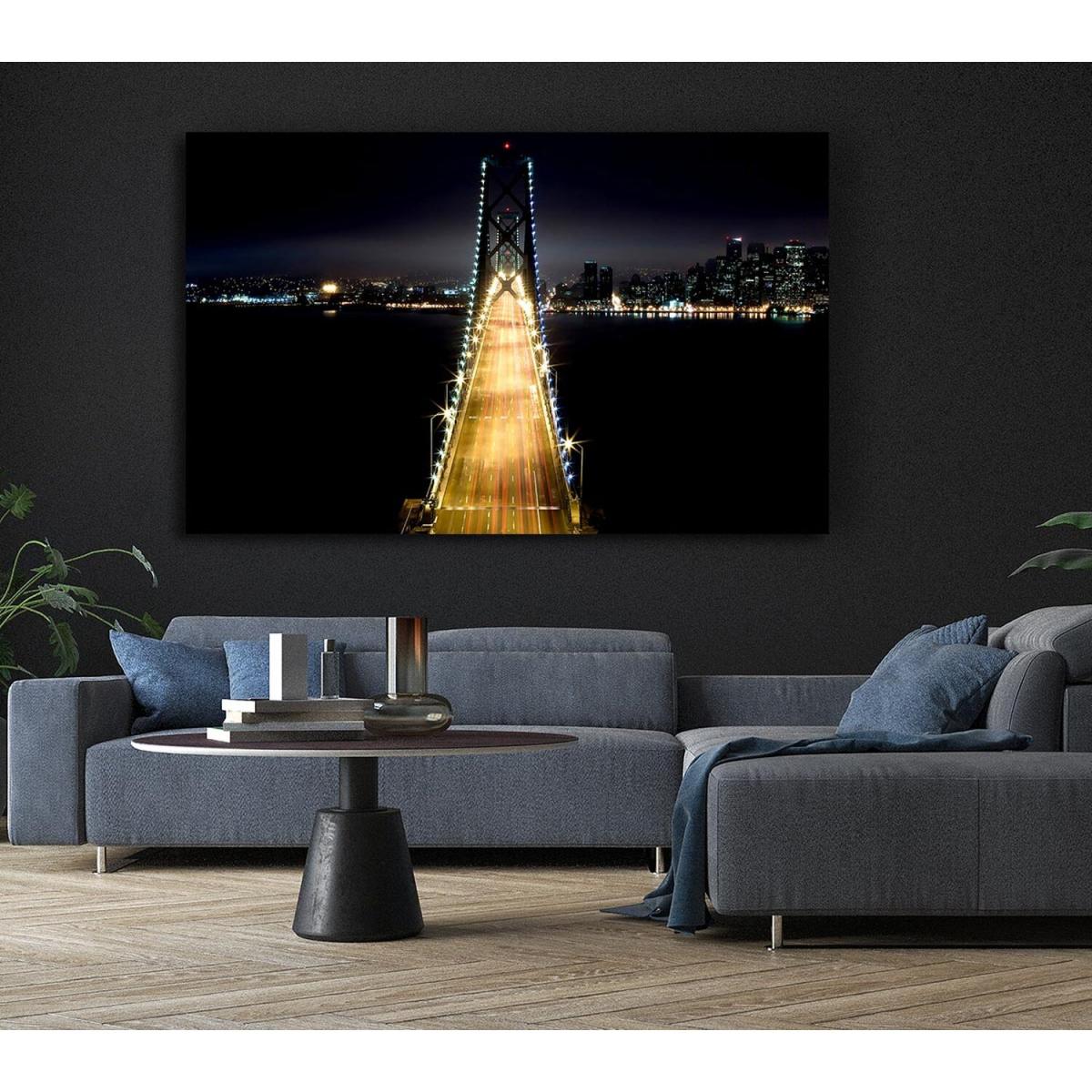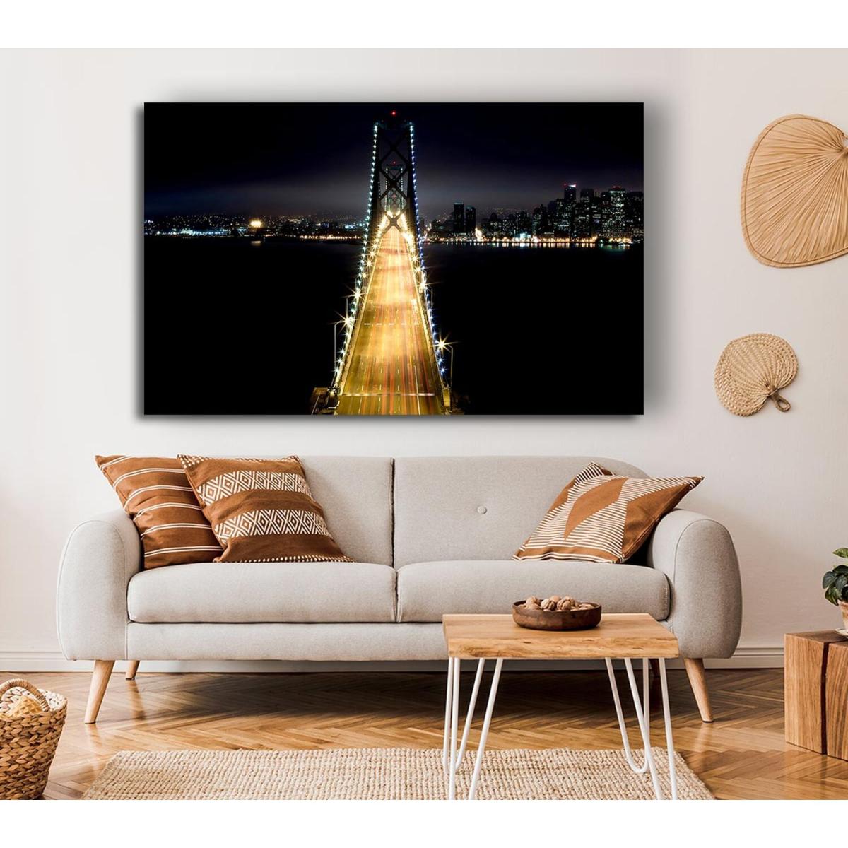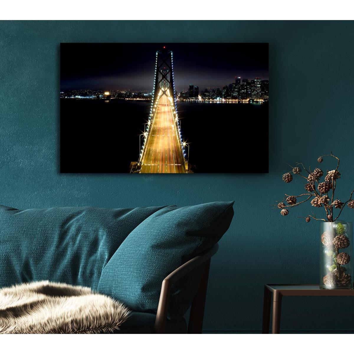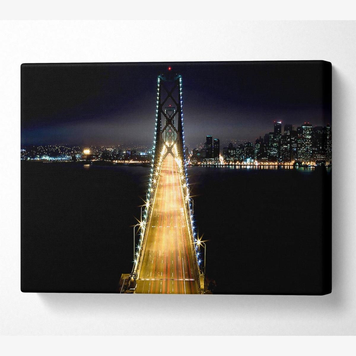 Lights on Bay Bridge Canvas Print Wall Art - Yellow / 101.6cm