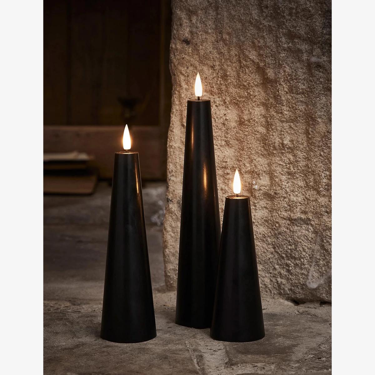 Lights4Fun Set of 3 TruGlow® Cone Pillar LED Candles - Black, Black