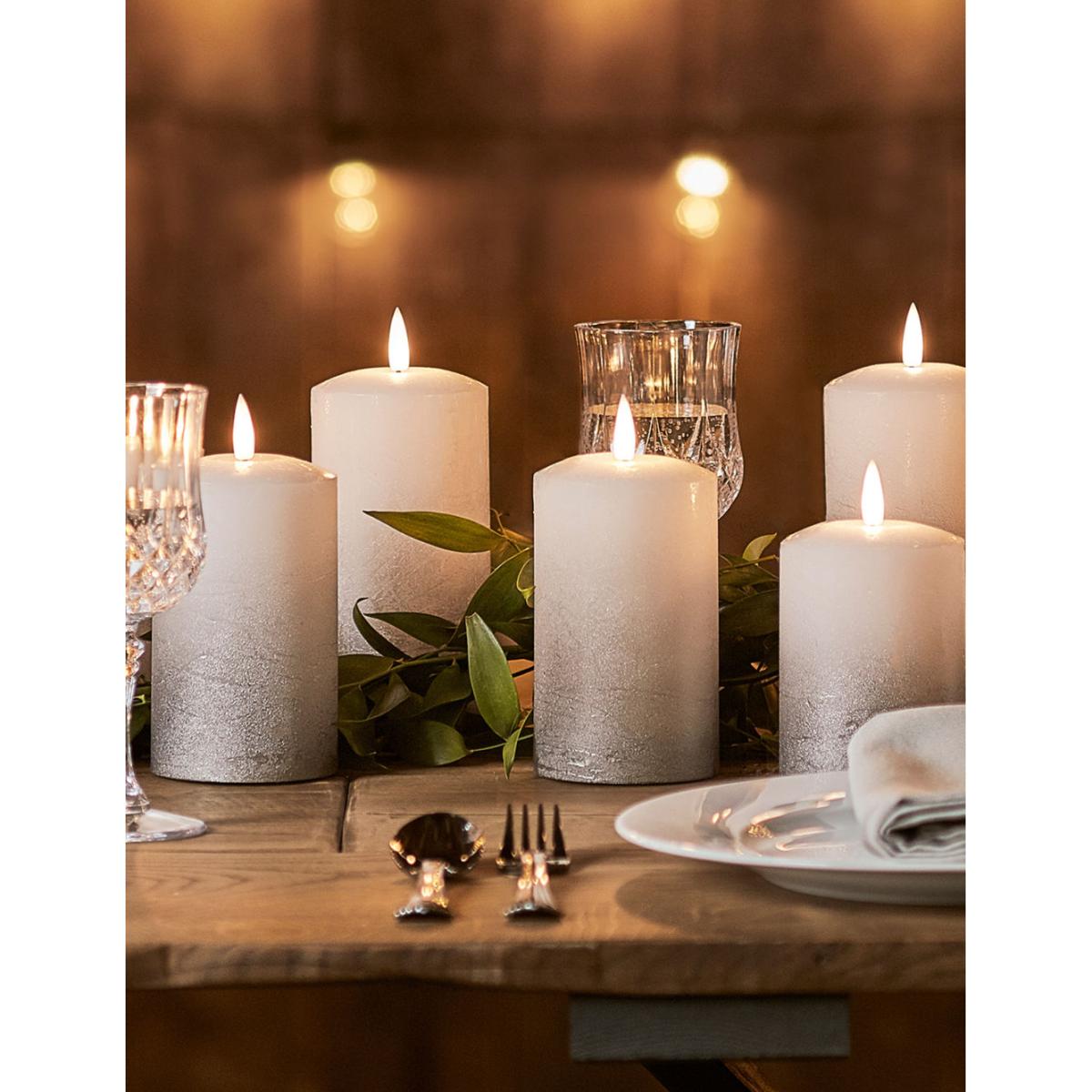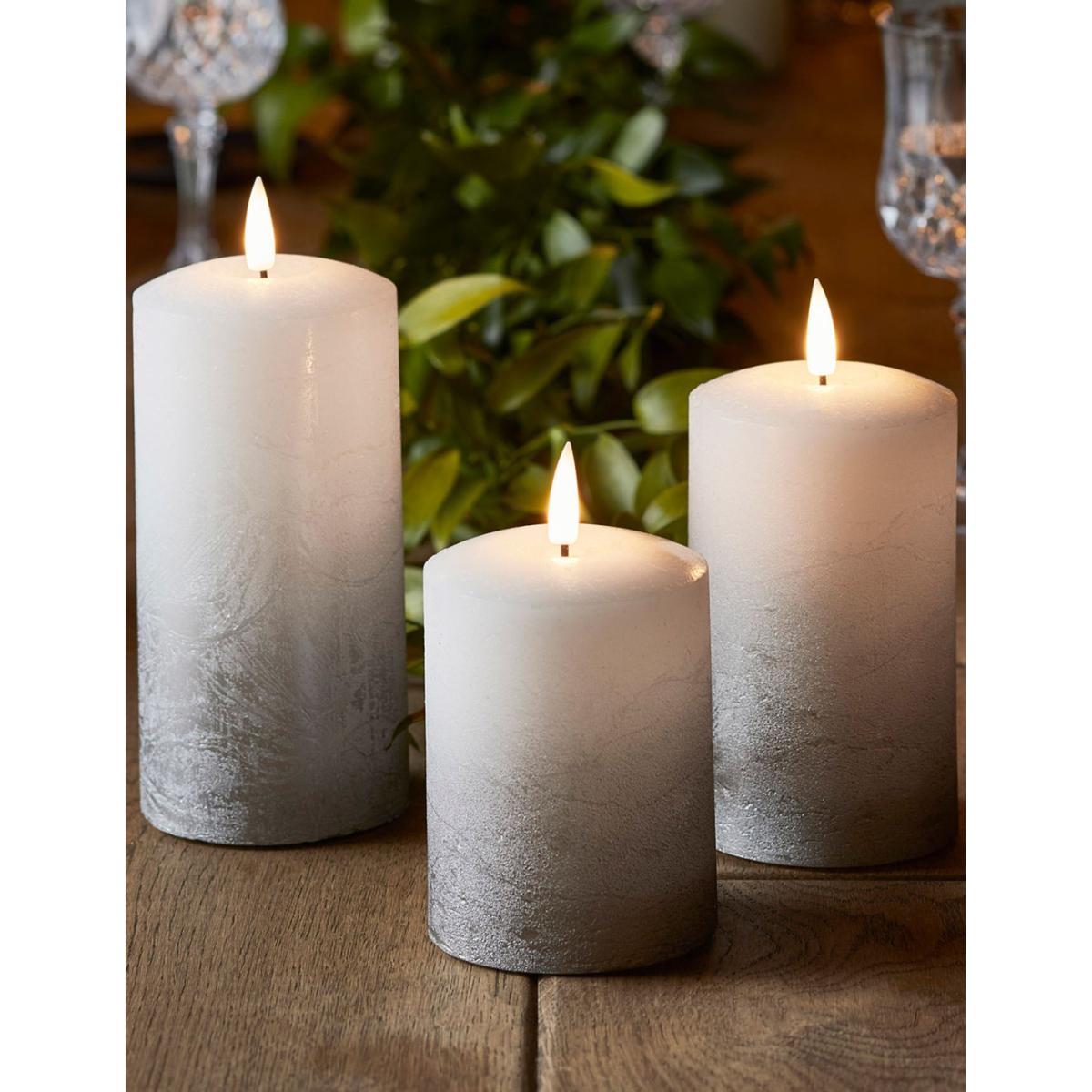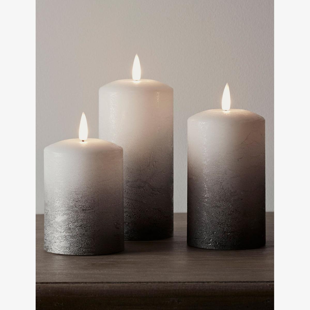 Lights4Fun Set of 3 TruGlow® Ombre Pillar Candles - Grey, Grey