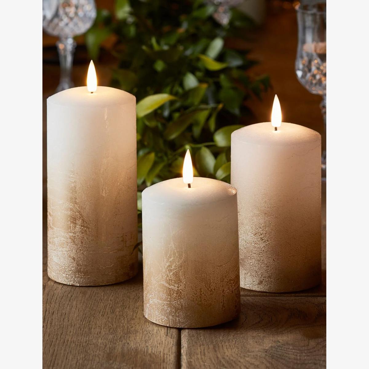 Lights4Fun Set of 3 TruGlow® Pillar LED Candles - Light Bronze, Light Bronze