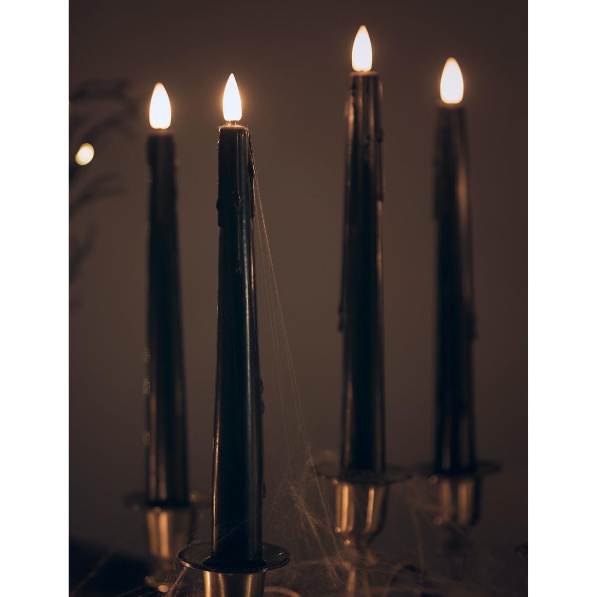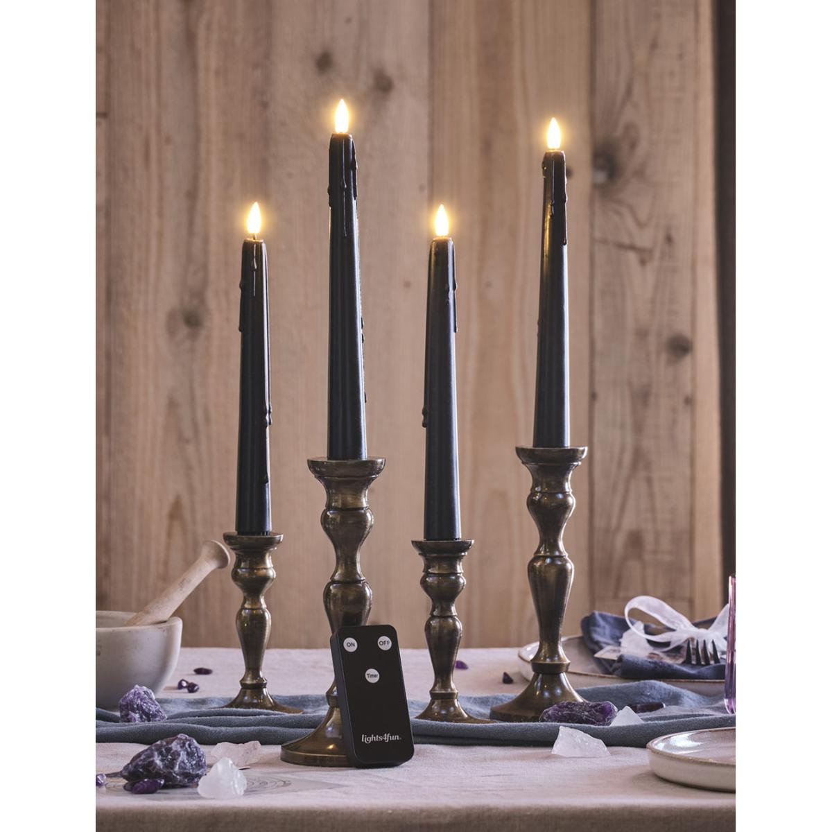 Lights4Fun Set of 4 TruGlow® Dripping Wax Taper Candles - Black, Black