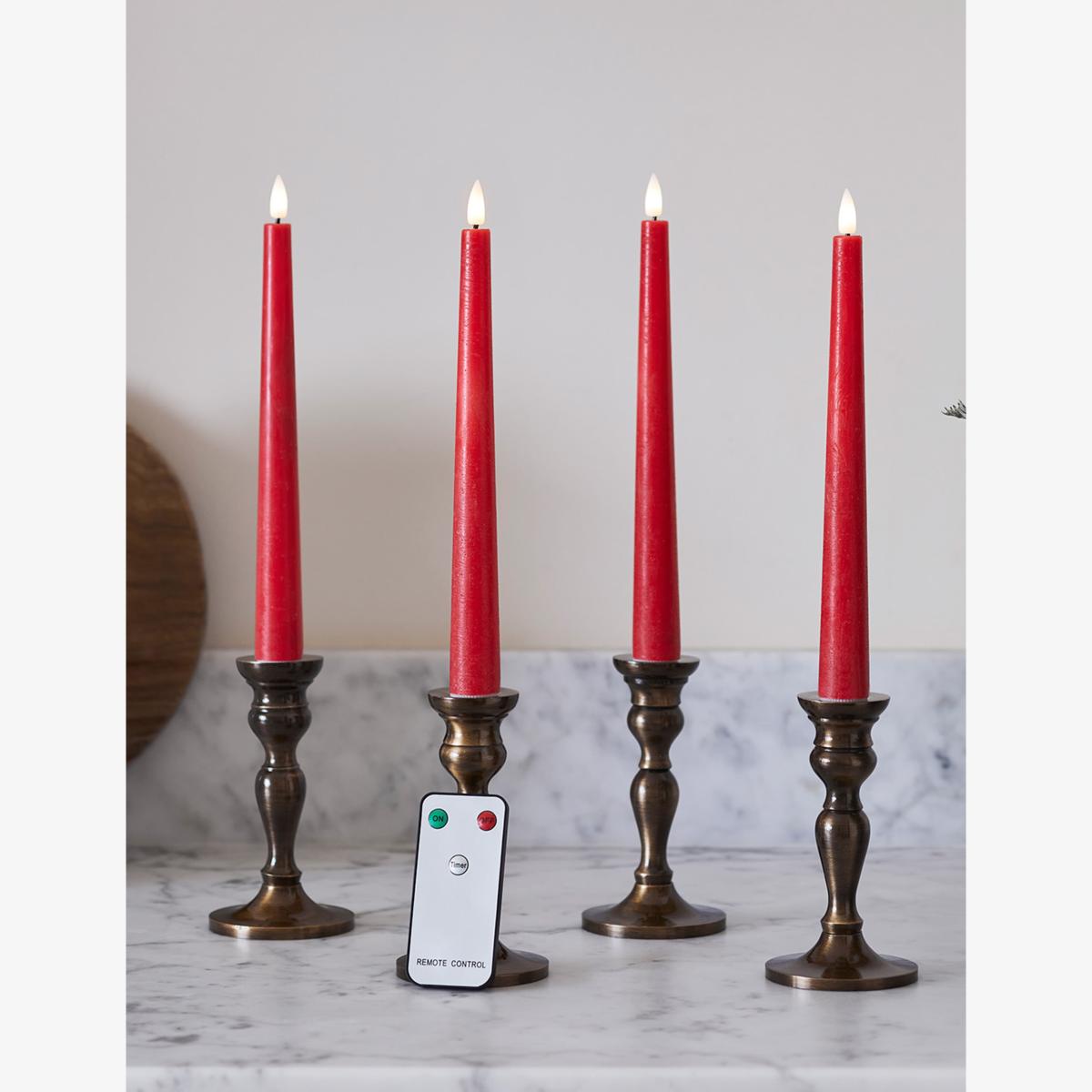 Lights4fun Set of 4 TruGlow® LED Taper Candles Red