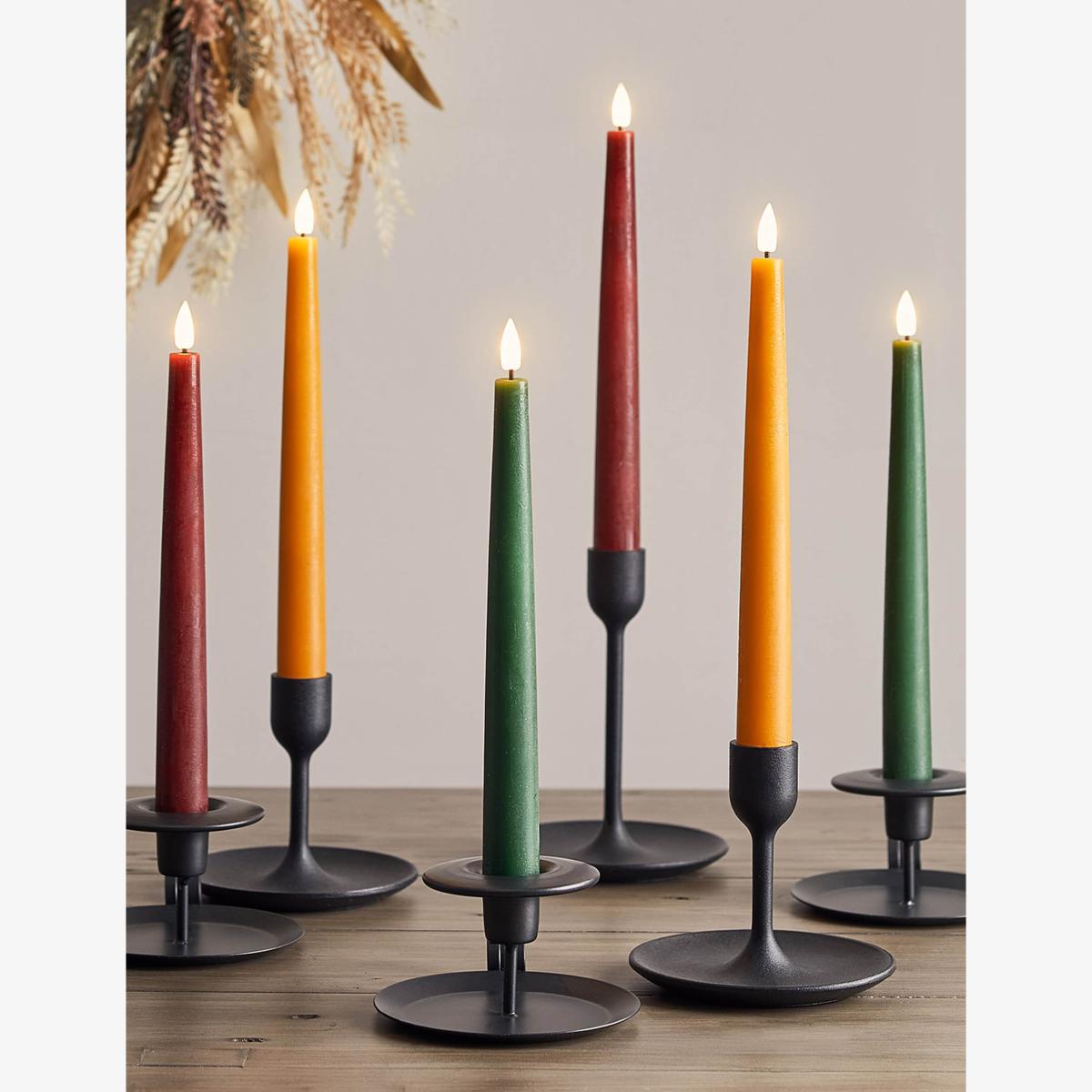 Bring an autumnal glow to your table with this six-pack of Tru. Glow® taper candles from Lights4fun. Crafted from real wax, these slim LED candles feature innovative technology that produces a realistic flame. Each candle has a six-hour timer and provides 600 hours of glow. Batteries and candle holders are not included.