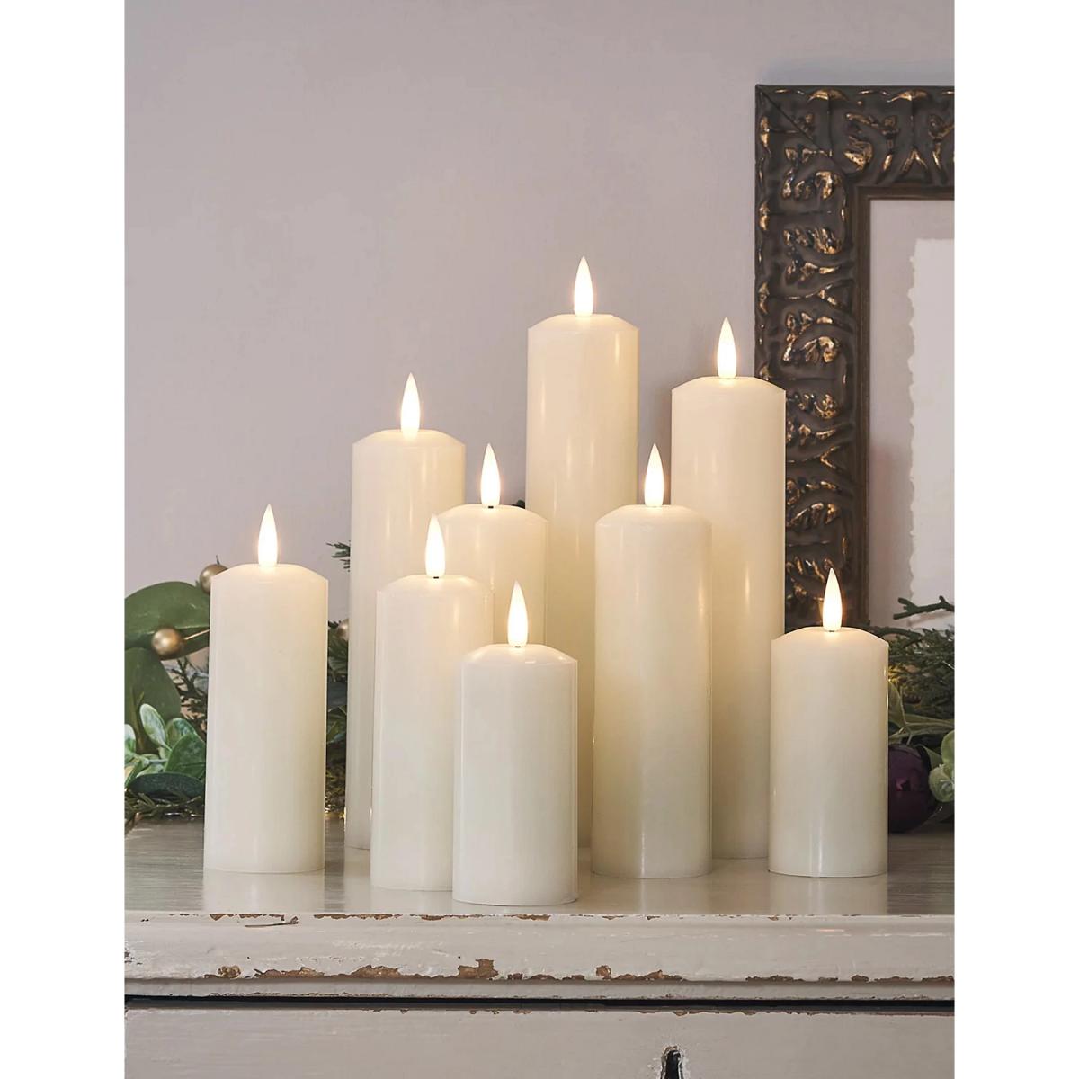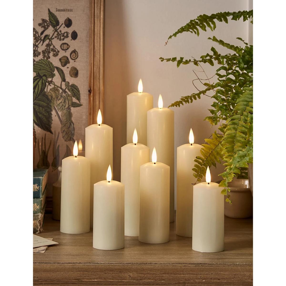 Lights4Fun Set of 9 TruGlow® Slim Pillar LED Candles - Ivory, Ivory