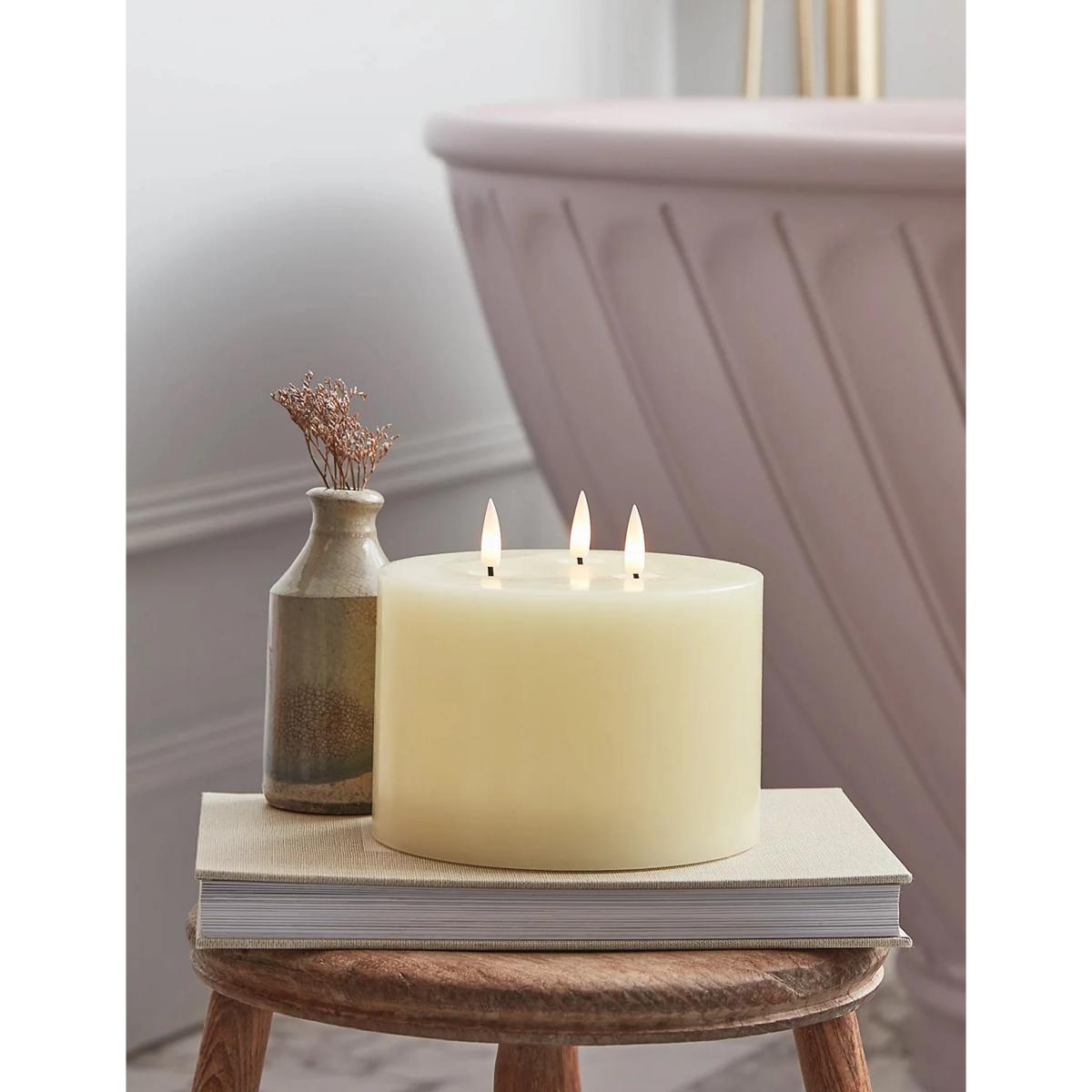 I love the Lights4Fun TruGlow 3 Wick LED Candle for its modern, understated aesthetic and practical functionality. Its ivory finish makes it versatile and easy to incorporate into various interiors, from contemporary scandi to rustic charm. It works particularly well as a centrepiece on dining tables or layered on shelves alongside other neutral accents. For styling tips, try pairing it with textured elements like woven placemats or natural wood, and placing a few smaller candles or greenery nearby to create a cosy yet clean look. Its flameless design also makes it safe and fuss-free, perfect for creating ambience without the worry of flames or smoke.