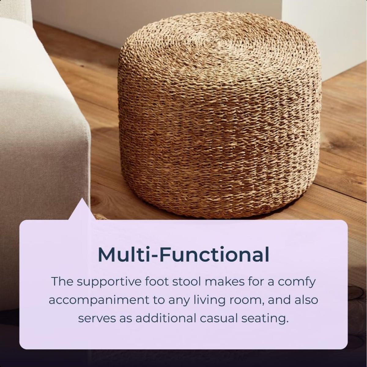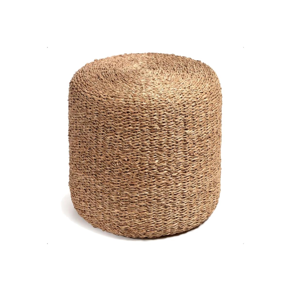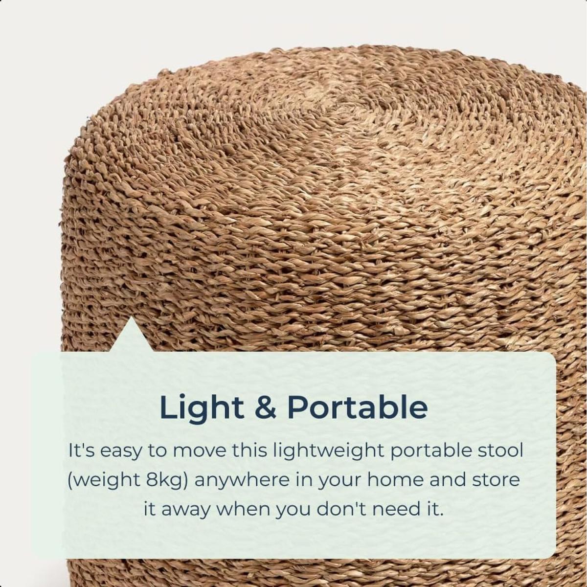 Lightweight Artisanal Round Jute Braided Pouffe - Natural