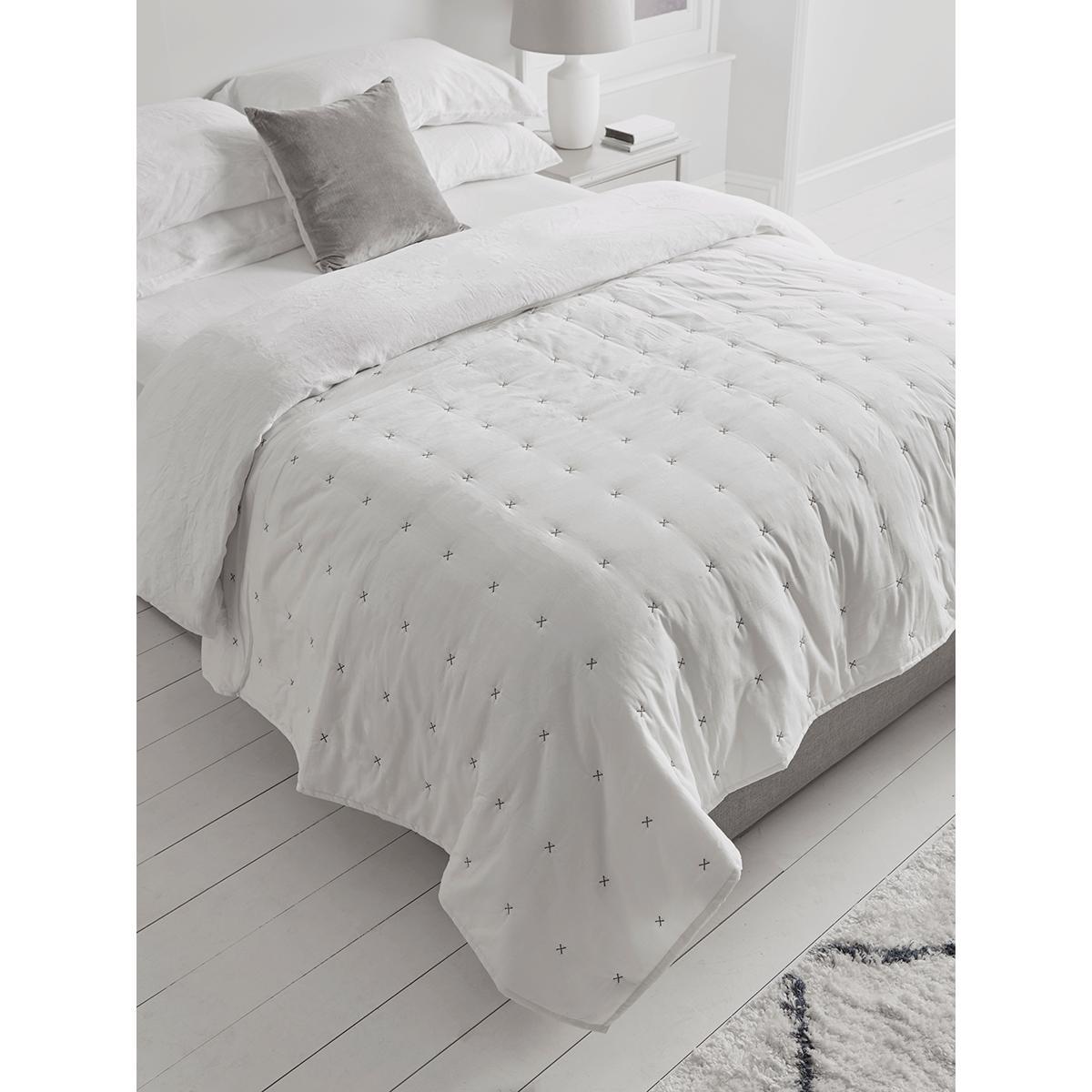 Finished with decorative grey cross stitches to create a quilted effect, our Lightweight Cross Stitch Bedspread in white will help you create a luxuriously tranquil Scandinavian-inspired aesthetic in your bedroom all year round. A coordinating. Cross Stitch Cushion. Is also available.