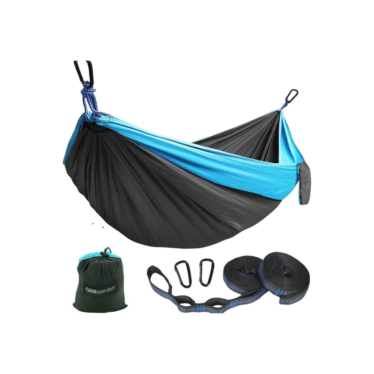 Gr8 Garden Lightweight Portable Travel Camping Hammock Outdoor Ultra Light Swing Hanging Hiking Sleeping Backpacking Bed Straps Hook Kit Carry Bag Set. Gr8 Garden Ultra Light Travel Camping Hammock. Tough, durable and comfortable, perfect for travelling, hiking, garden, camping, indoor, picnic etc. You can hang it anywhere when you enjoy your outdoor leisure time. Easy to carry and pack with the handy drawstring bag. Easy to set up you can tie the hammock up between two trees.