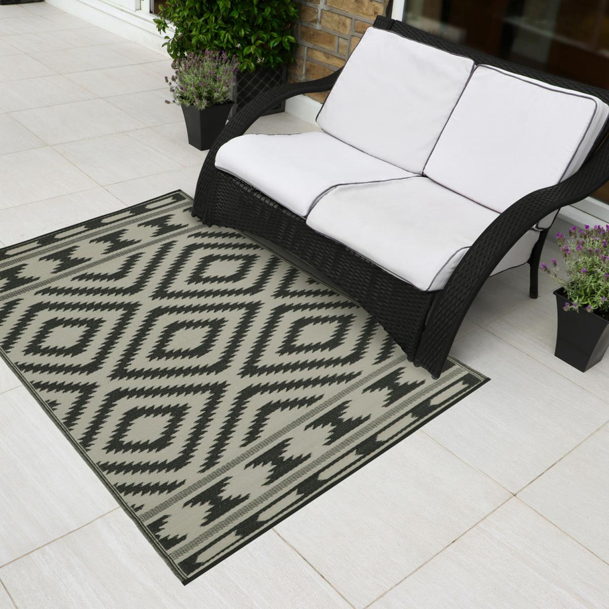 Lightweight Reversible Plastic Woven Outdoor Rug 120 x 180cm - Black