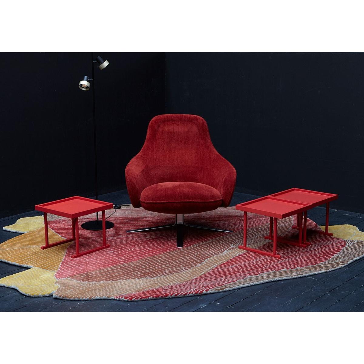 Fascinated by the contrast between east and west, visionary designer Denis Guidone combines the aesthetics of both in pieces that are precise and unconventional. The tufted Aki rug is one such piece, inspired by nature and the changing seasons, with autumnal hues of red and orange that take their cues from fallen leaves.