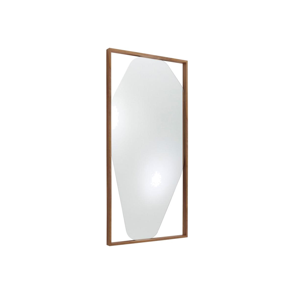 Rearranging the traditional shaped mirror, the Belize places irregular formed reflective glass within the context of a hard angled frame. Designed by Kensaku Oshiro, this contemporary piece is made from smooth American walnut with a softly cut pane of glass slotting along each interior side.