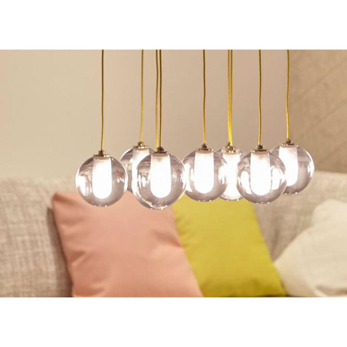 I love the Calot pendant for its sleek, modern silhouette that adds a contemporary edge to any space. Its suspended design with delicate glass globes offers a subtle yet striking statement, making it versatile for both minimalist and more eclectic interiors. It works particularly well in open-plan living areas or over dining tables where its layered arrangement creates visual interest without overwhelming the space. For styling tips, consider pairing it with matte metals or soft, muted colour schemes to highlight its understated elegance. Additionally, installing it at varying heights can help create a dynamic focal point and a sense of depth in the room.