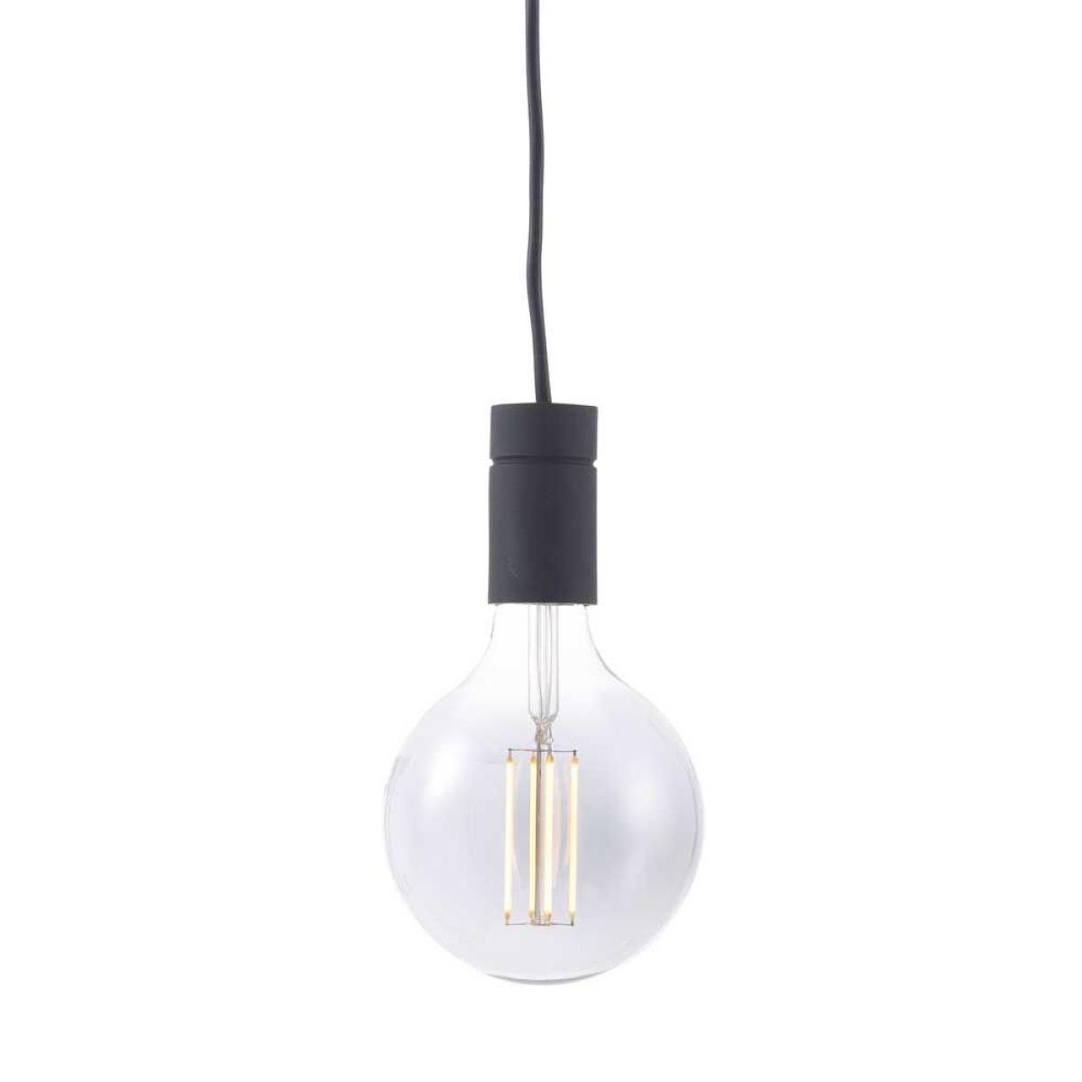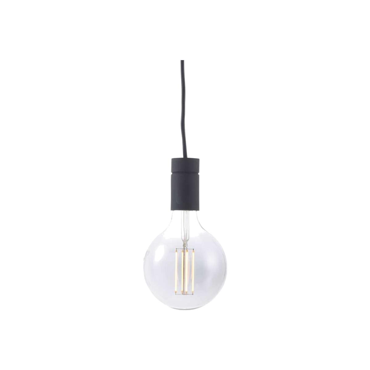 Created by enigmatic design duo Jonas Forsman Lars Wettre, the Cylinder Pendant Light is crafted by Ligne Roset. The pared-back Cylinder Pendant is composed of a black silicone fixture and a coordinating cable. The pendant fixture is accompanied by a smoked-grey LED bulb with an exposed filament that casts a warm white glow throughout the space.