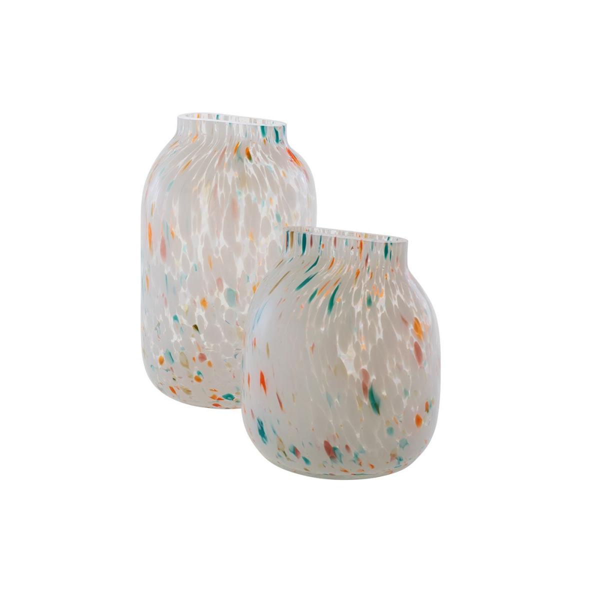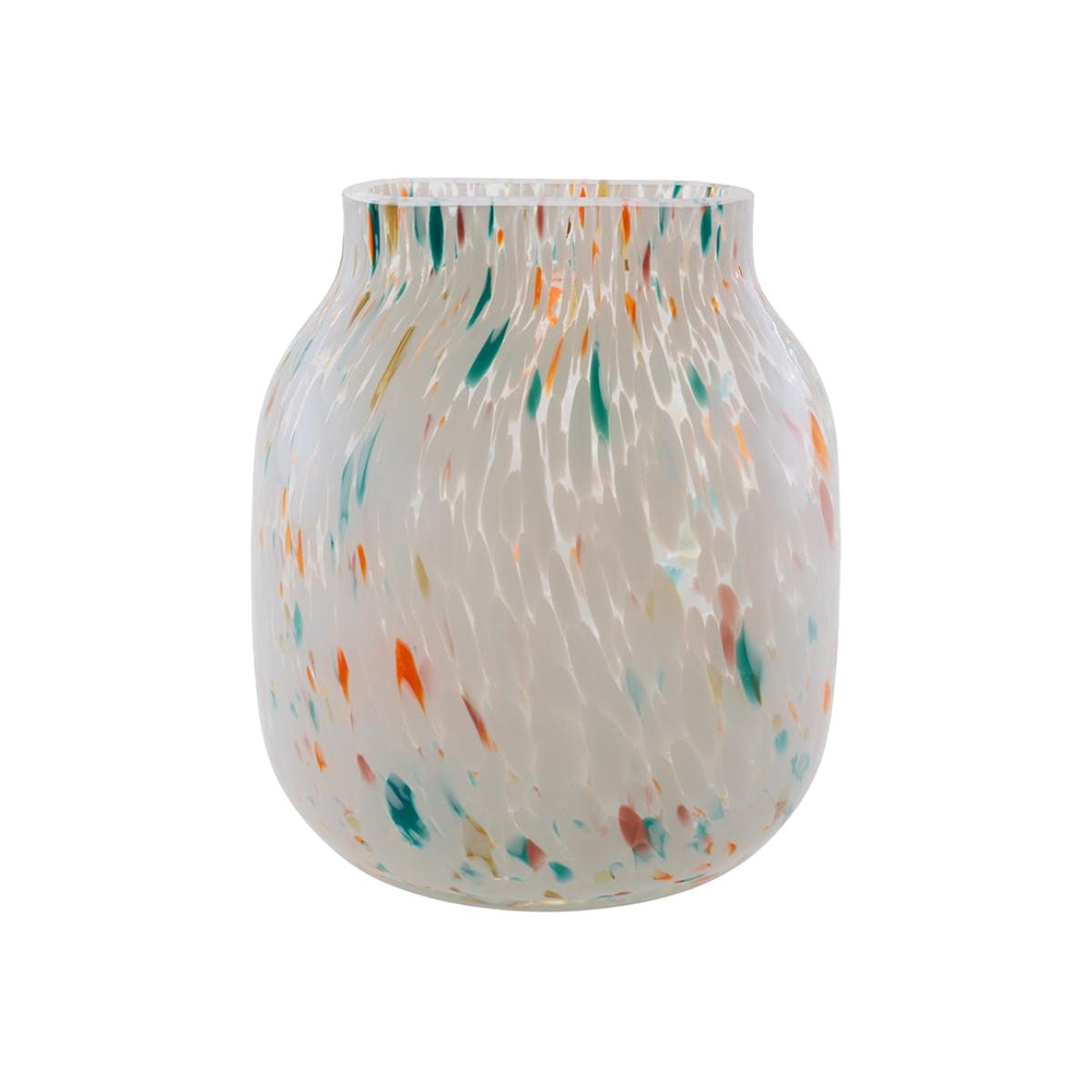 I love this little vase for its playful yet refined look. Its colourful speckled design works well in modern, eclectic, or even minimal interiors, adding a touch of personality without overwhelming the space. It’s particularly versatile in small-scale arrangements - think a few delicate stems, dried flowers, or even solo botanicals-that can sit happily on a side table, shelf, or windowsill. For styling tips, consider pairing it with neutral tones to let the colours pop, or group several vases of different sizes for a layered, curated display. Its compact size makes it ideal for adding subtle accents in both cosy corners and more airy, open spaces.