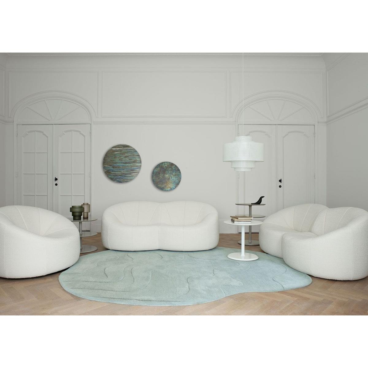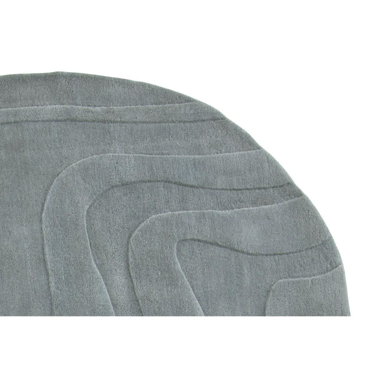 A new version of the Gavrinis rug in the shape of an irregular pebble, following the contours of Pierre Paulin’s sketches like topographical curves. The lines of the motif are achieved with subtle sculpting of the woollen tufts which are in two different heights, but the same colour. Rug in 100% wool, hand tufted and sculpted using tufts of 2 different heights (10-11 mm and 14-15 mm) to sketch out the motifs using a single colour.
