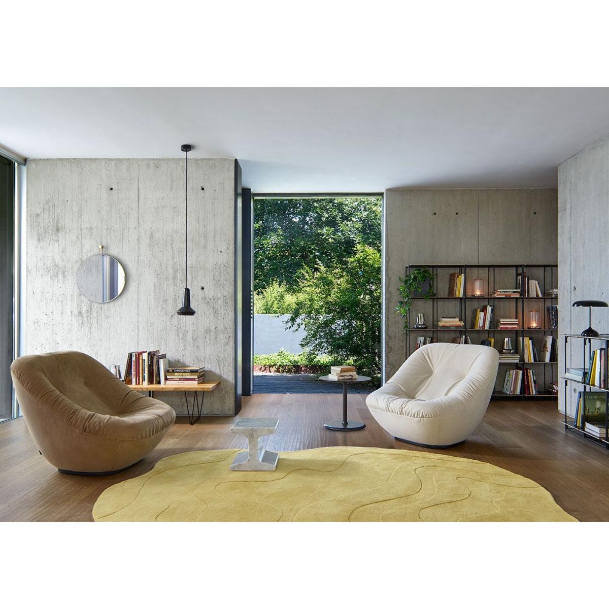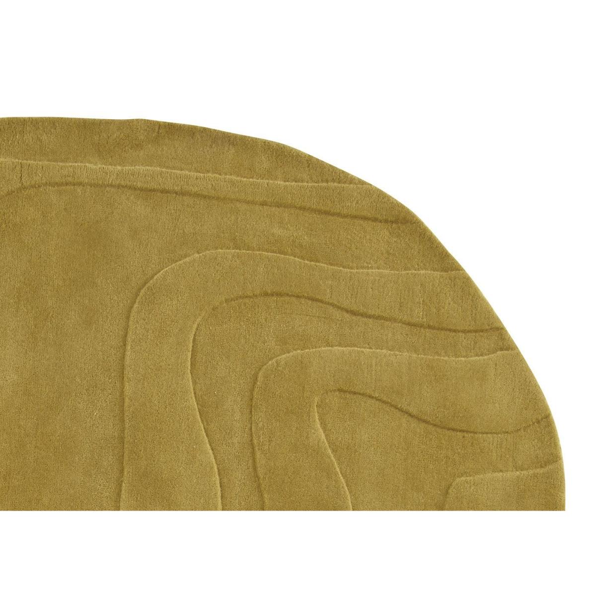 A new version of the Gavrinis rug in the shape of an irregular pebble, following the contours of Pierre Paulin’s sketches like topographical curves. The lines of the motif are achieved with subtle sculpting of the woollen tufts which are in two different heights, but the same colour. Rug in 100% wool, hand tufted and sculpted using tufts of 2 different heights (10-11 mm and 14-15 mm) to sketch out the motifs using a single colour.