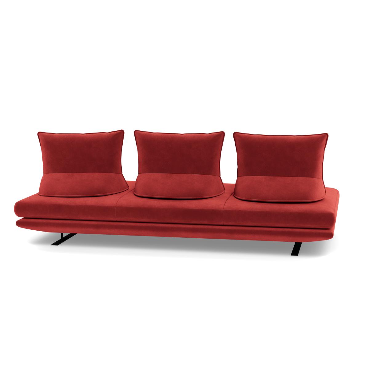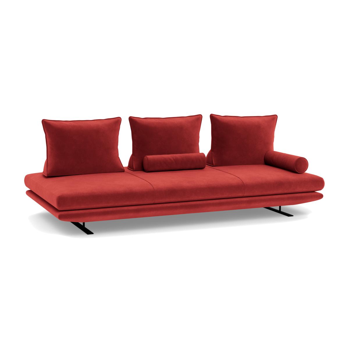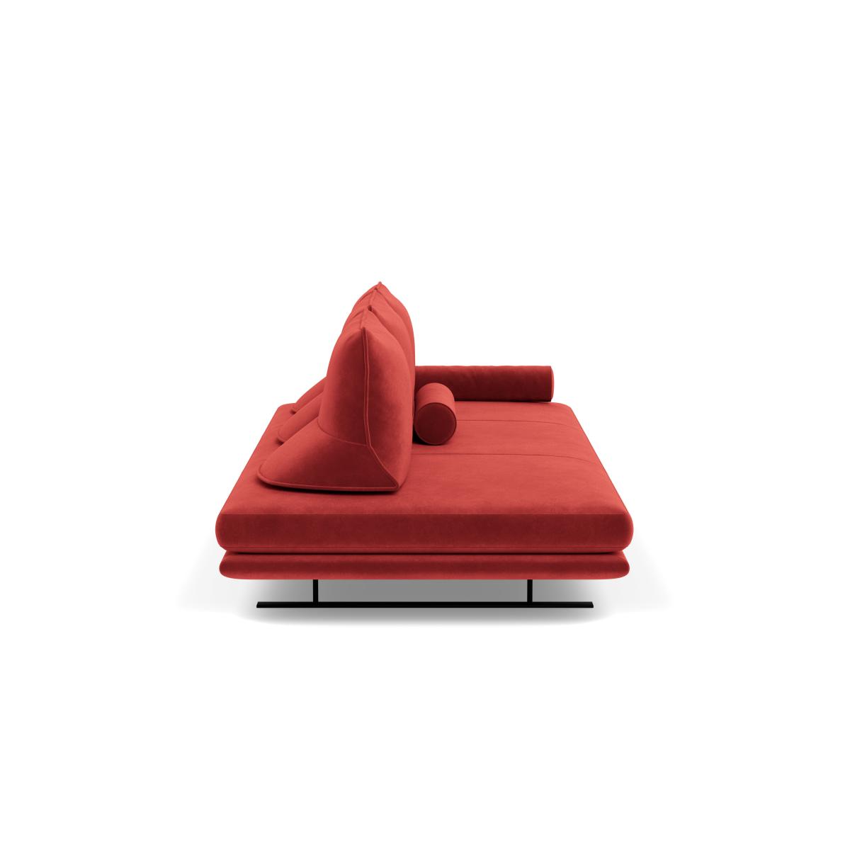 I love this sofa for its bold, statement-making colour and sleek silhouette, which works especially well in modern or contemporary interiors. The Goya red Alcantara fabric adds a tactile richness and luxury feel, making it a focal point in the space. It’s perfect for both minimalist schemes and more eclectic settings, where its vivid hue can inject personality. For styling tips, pair it with neutral-toned furniture and accessories to let the sofa stand out, or contrast it with muted patterns to create visual interest. Its spacious design and comfortable cushions make it ideal for socialising or relaxed lounging, making it as practical as it is stylish.
