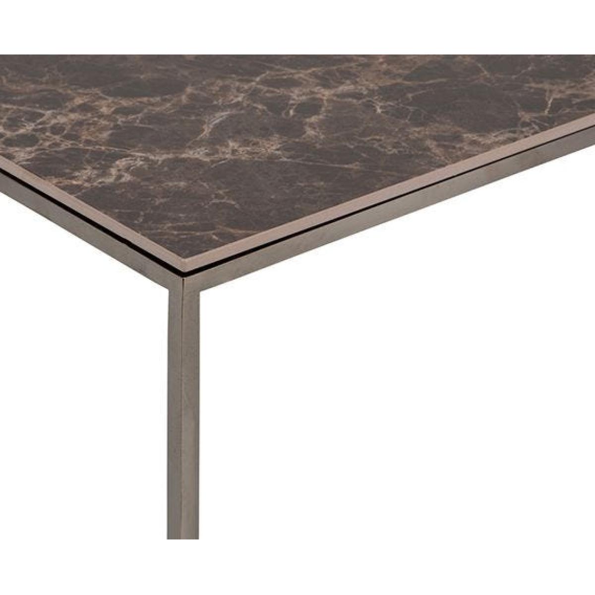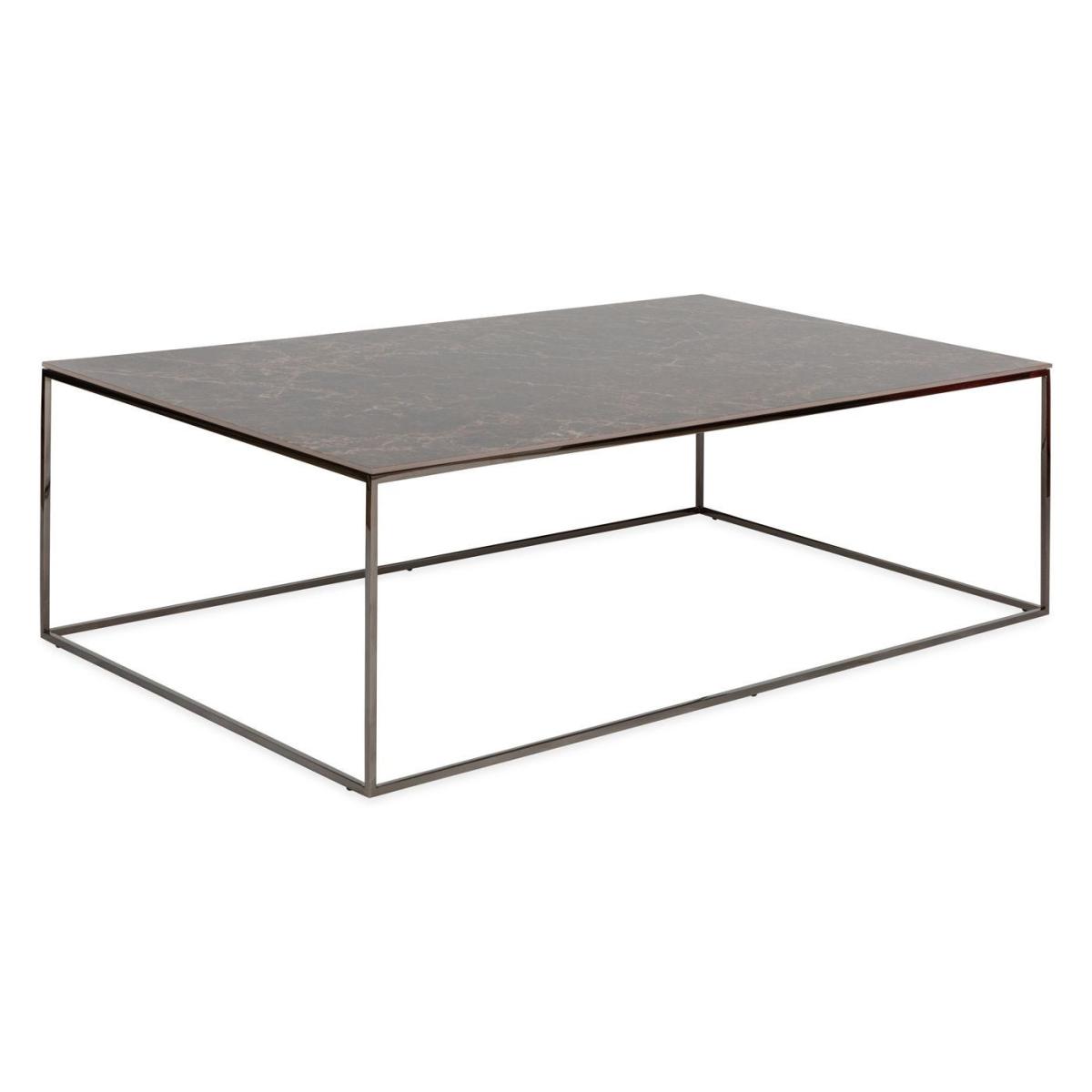Designed by Pagnon and Pelhaître for Ligne Roset, the Space Rectangular Low Table is a modern take on the traditional coffee table. With geometric lines and a streamlined silhouette, the table makes a stylish addition to any contemporary home. The cube-like steel base has a visually lightweight quality, while the Emperador ceramic stoneware top adds a touch of luxury.