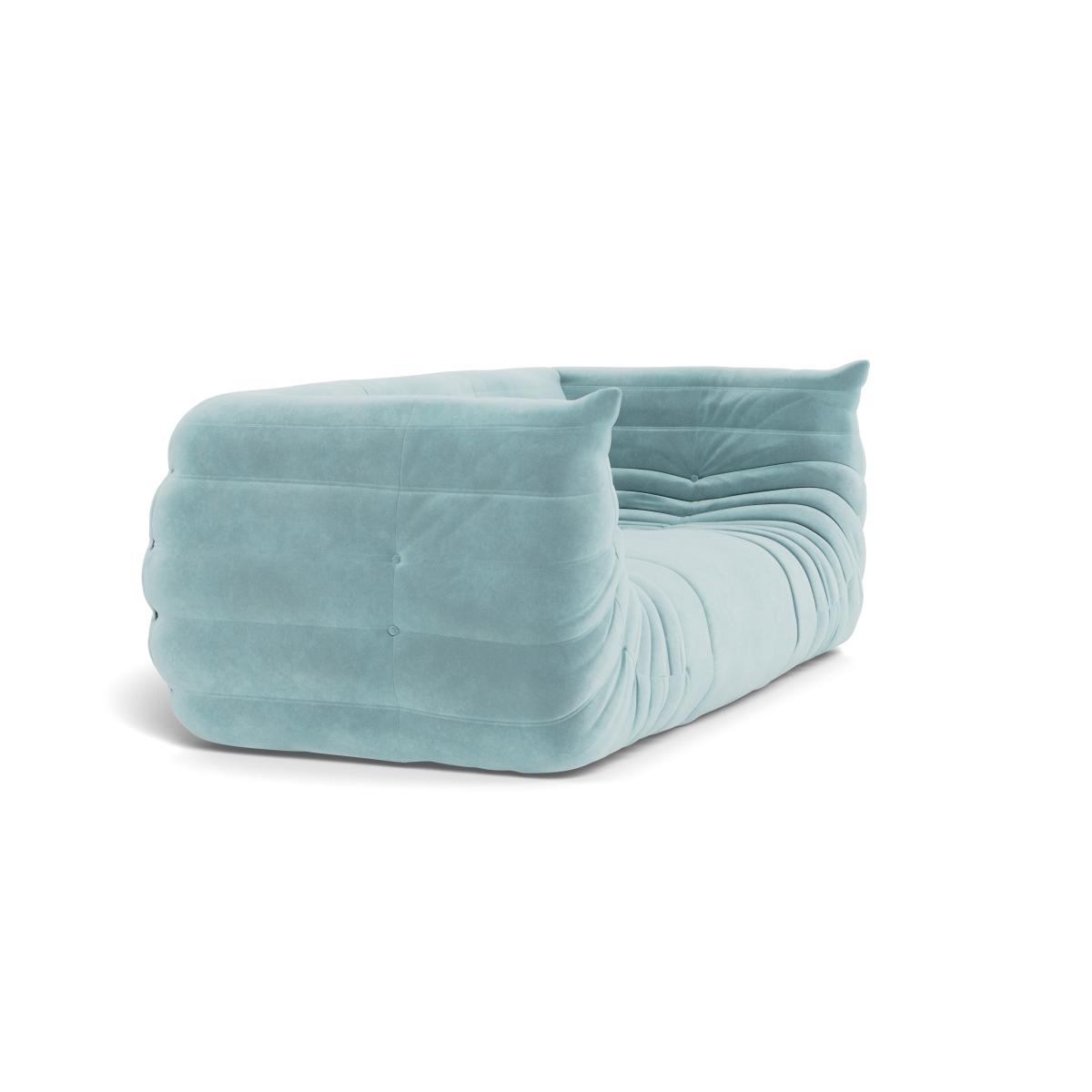 Instantly recognisable from its distinctive shape, the Togo has remained a cult classic for over 40 years. Hand sewn in the small French village of Briord, the curved silhouette of the legendary sofa provides the characteristic pleats of crumpled fabric whilst also making it the ideal seat to lay back and relax into.