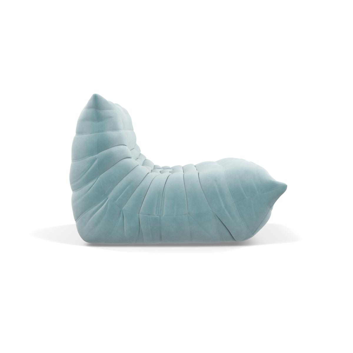 Instantly recognisable from its distinctive shape, the Togo Sofa has remained a cult classic for over 40 years. Hand sewn in the small French village of Briord, this low-lying sofa has a curved silhouette providing the characteristic pleats of crumpled fabric and also making it the ideal seat to lay back and relax into.