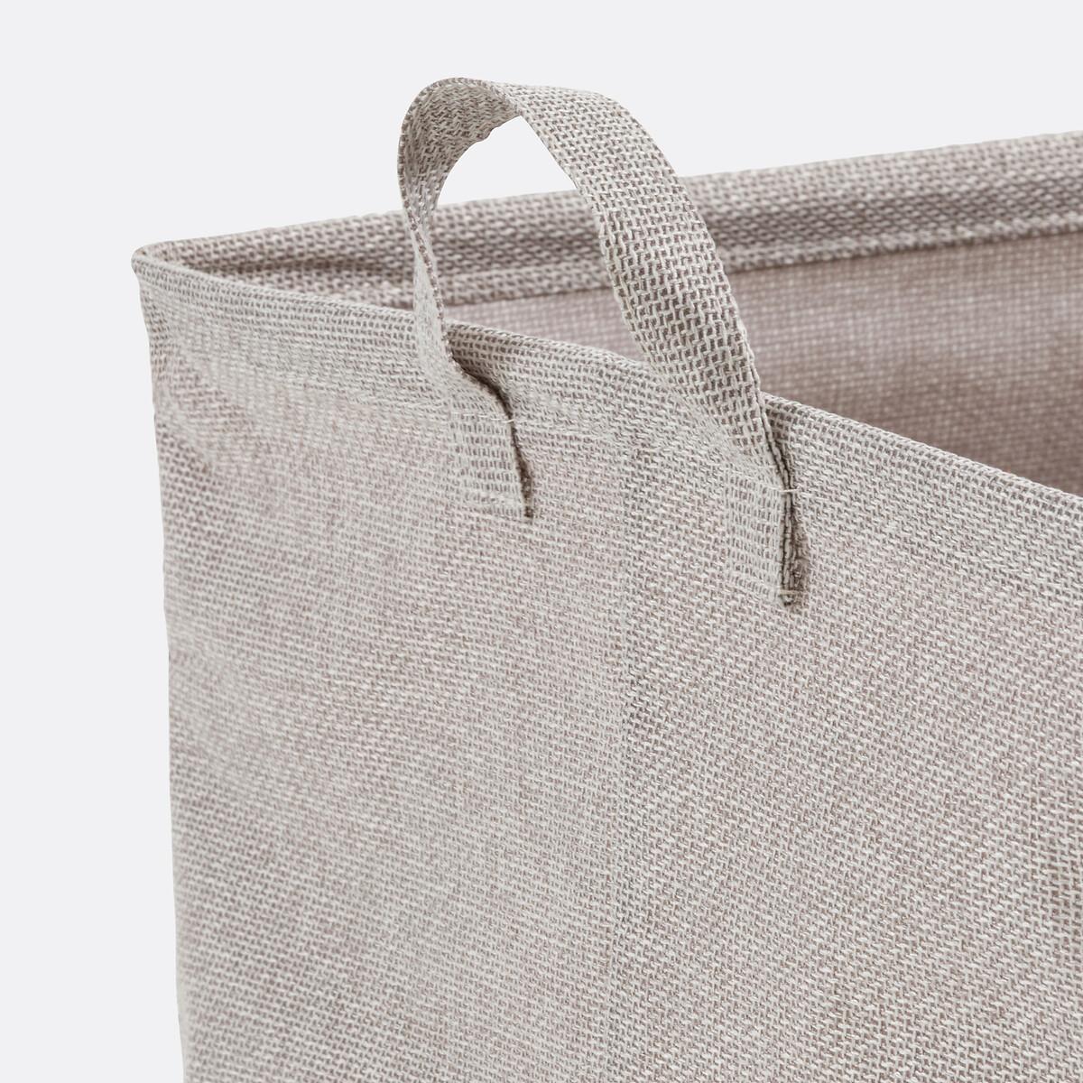 I love this basket for its simple, versatile look and practical size, making it a great addition to both contemporary and rustic interiors. The neutral polyester fabric allows it to blend seamlessly into a variety of colour schemes, while its structured shape helps keep spaces organised. It’s ideal for storing everything from textiles and toys to bathroom essentials. I’d style it as a neat storage solution in a living room corner, on open shelving, or as a tidy way to contain laundry or accessories in a bedroom. To elevate its look, consider layering with a textured throw or placing it alongside other natural materials like wood or wicker for a more curated feel.