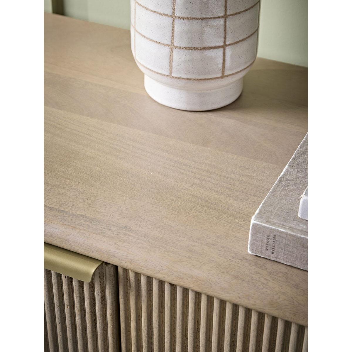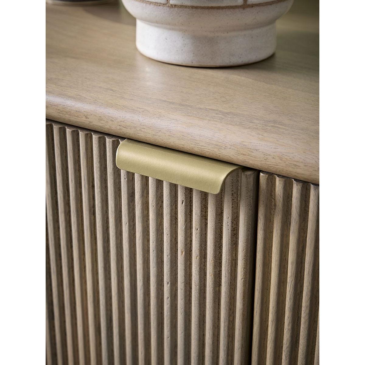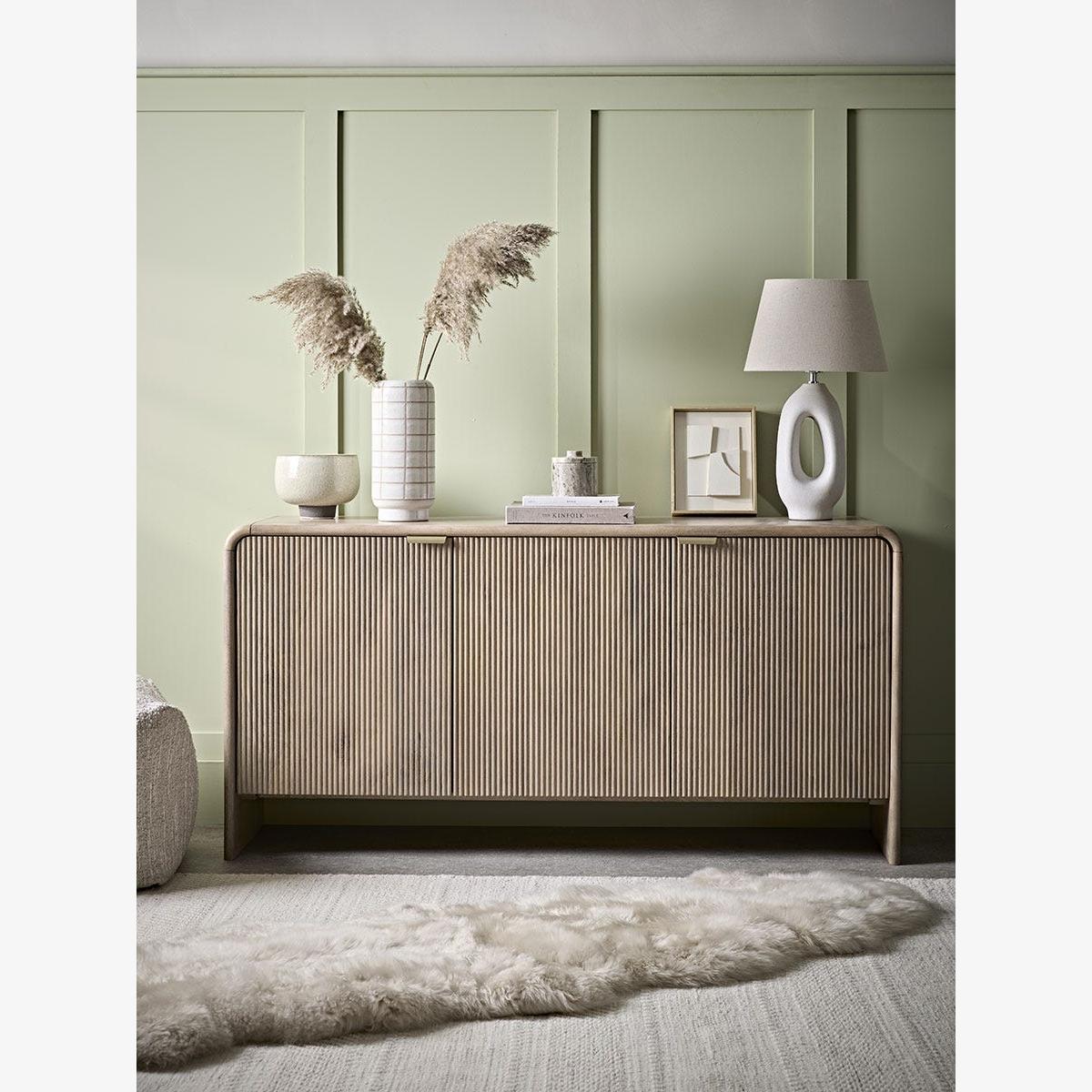 With a study frame, softened by curved corners, our Lija sideboard is fronted with ribbed door panels, creating a unique yet subtle twist to your home. Finished with luxury brass door handles, this sideboard, with its blonde mango wood frame and simple shape, works wonderfully in our Scandi trend.