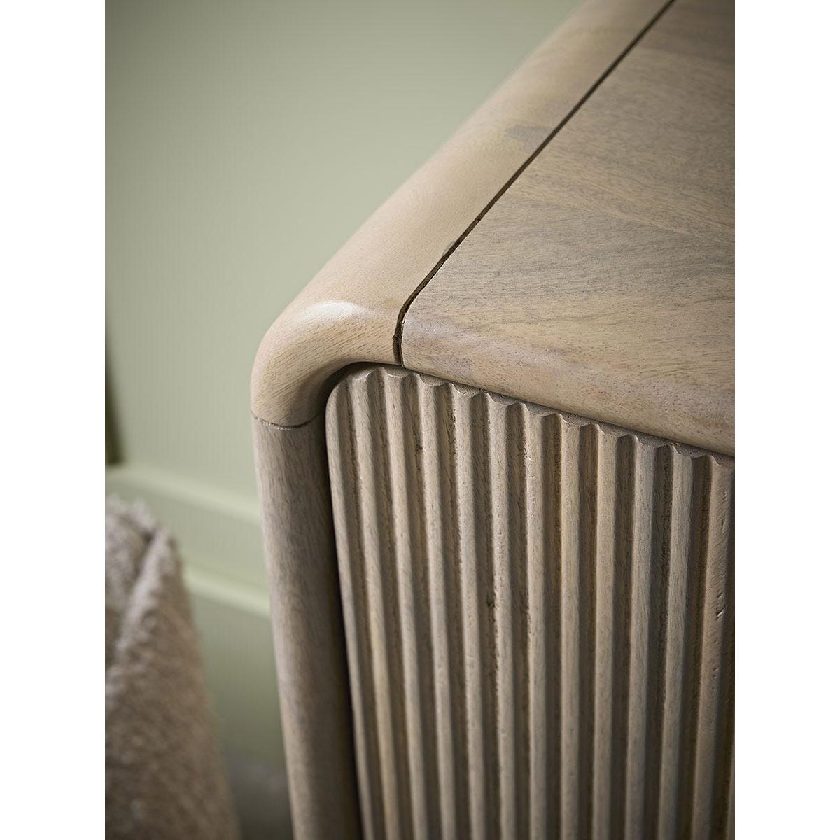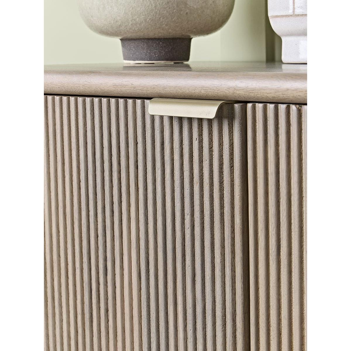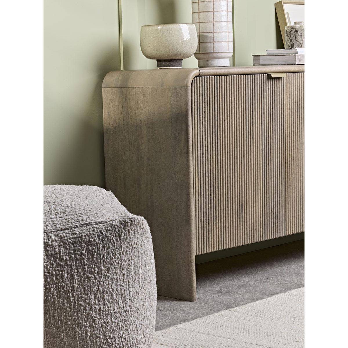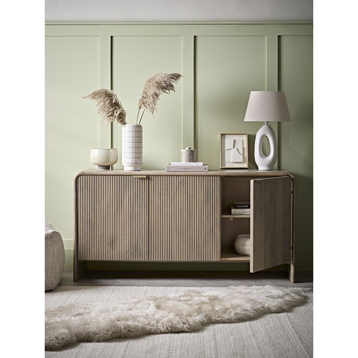With a study frame, softened by curved corners, our Lija sideboard is fronted with ribbed door panels, creating a unique yet subtle twist to your home. Finished with luxury brass door handles, this sideboard, with its blonde mango wood frame and simple shape, works wonderfully in our Scandi trend.