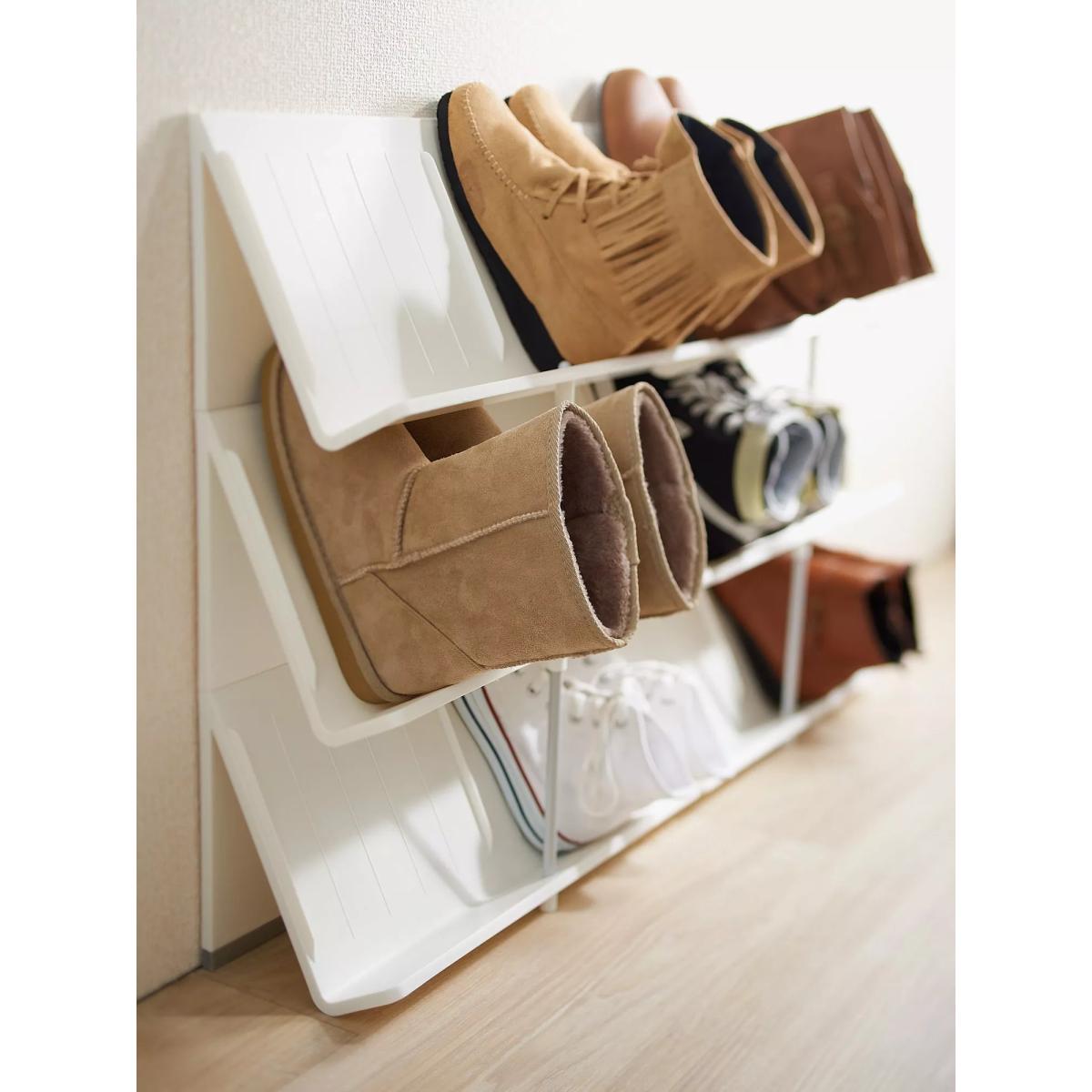 This 3 tier shoe rack is designed to fit seamlessly into any entryway and is perfect for storing not just regular shoes but also short boots and trekking shoes. You can easily connect multiple racks, maximising your space and keeping everything tidy. The flat back ensures stability and prevents dirt from marking your walls, keeping your space neat and footwear secure.