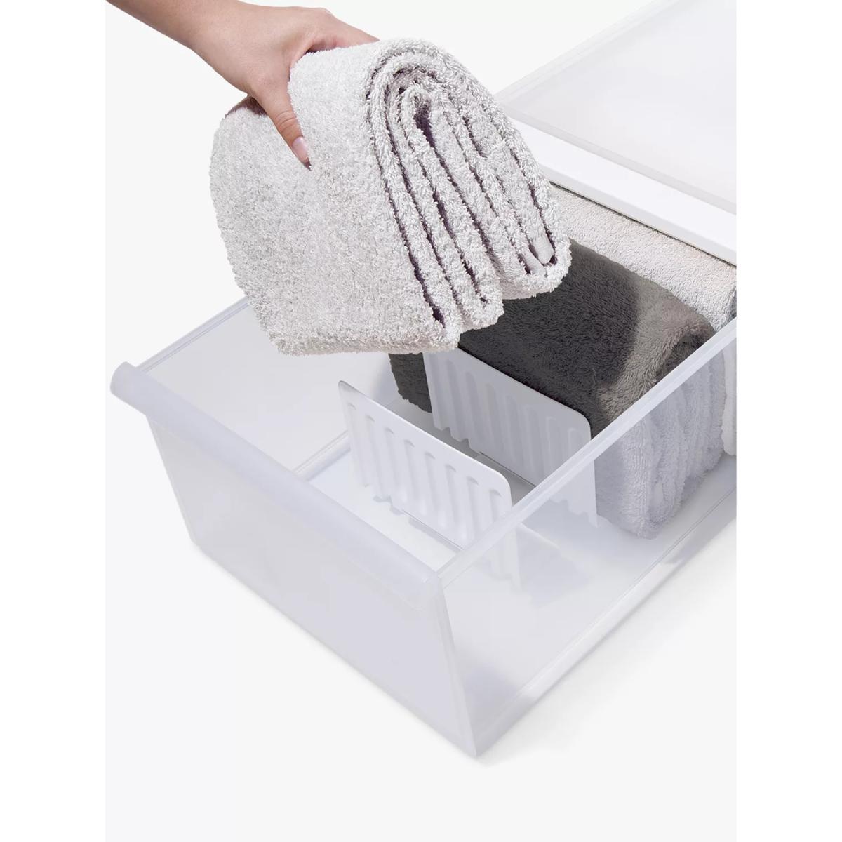 The like-it drawer separator is a practical addition to any organisation setup, offering an instant upgrade to cluttered drawers. I love how versatile it is-perfect for kitchen cutlery, office supplies, or even socks and underwear. Its neutral white colour makes it suitable for a variety of interior styles, from minimalist and modern to more traditional spaces. For a streamlined look, combine these dividers with matching storage boxes or baskets to maintain visual consistency. Practical styling tips include using them to categorise items within larger drawers or to create tidy, custom compartments in deeper drawers, making everyday items more accessible and maintaining a neat, clutter-free aesthetic.