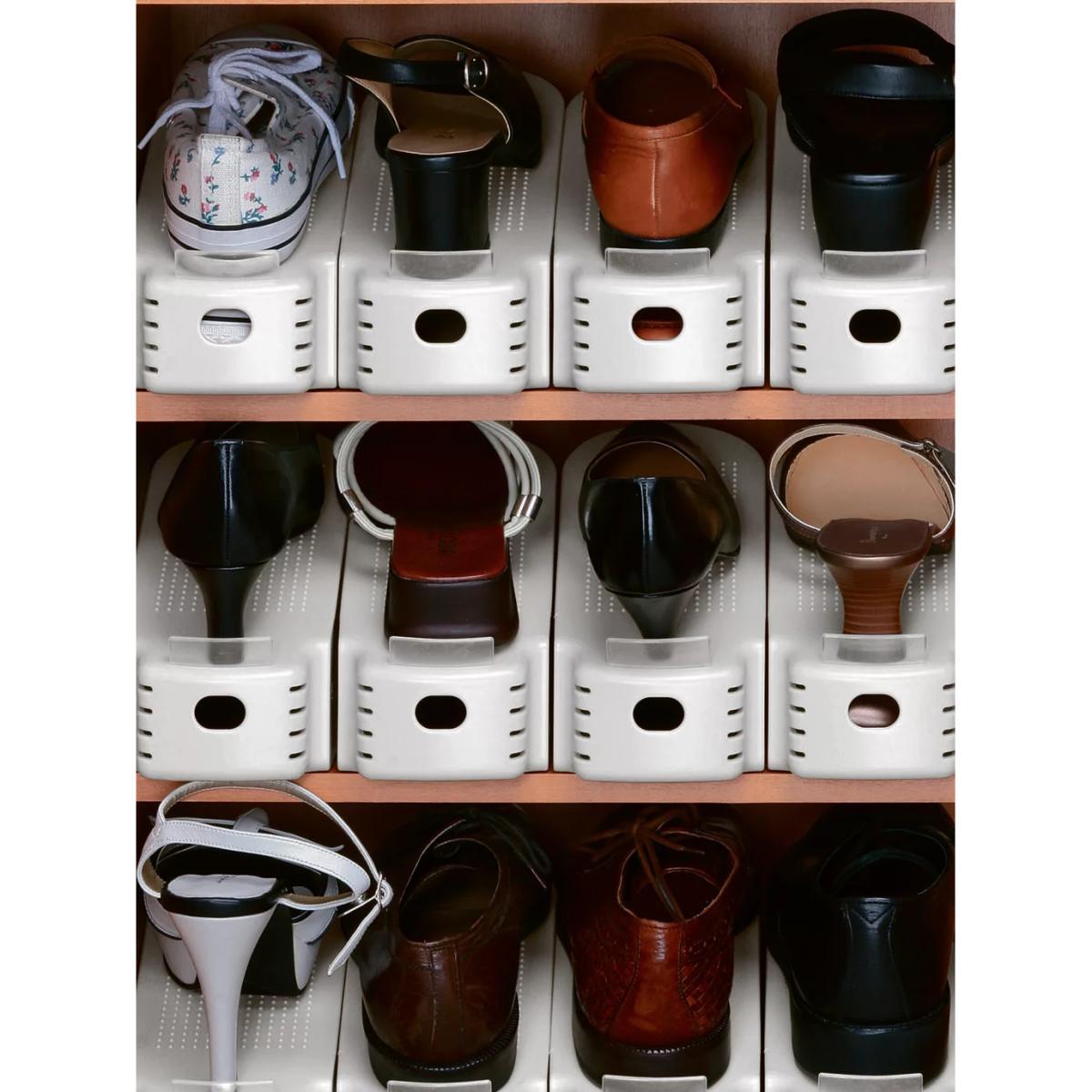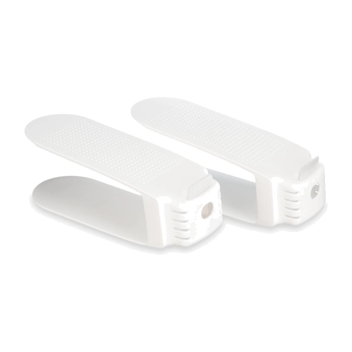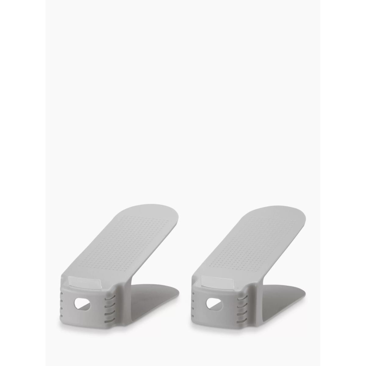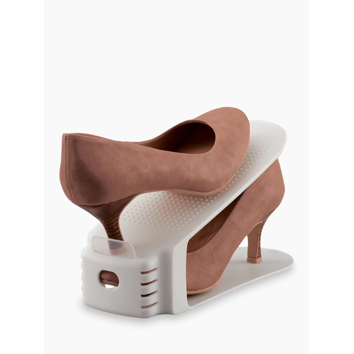 This set of 2 shoe holders is the perfect space-saving solution for storing your shoes. Rest one shoe on the top and the other on the base. The top shoe is kept in place by the bar at the front, whilst the bottom shoe slides out easily from underneath.