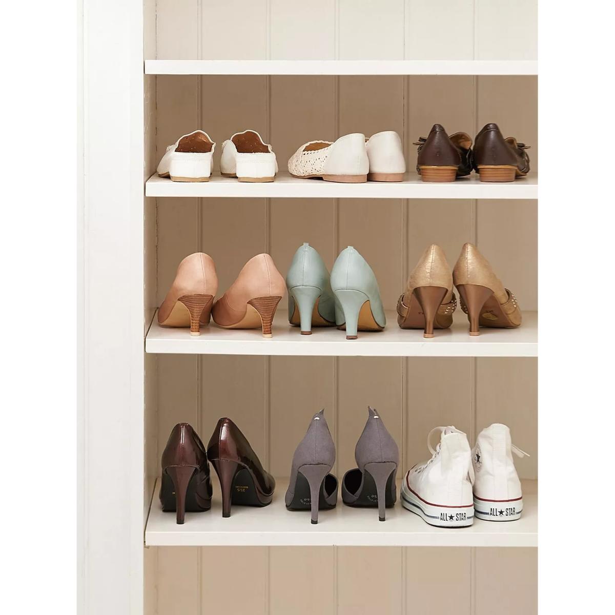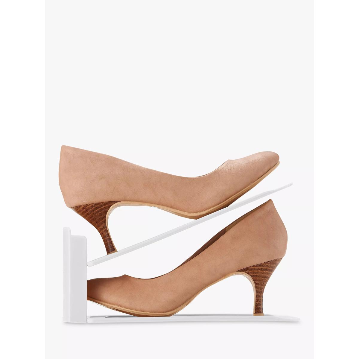 I’ve been using these space-saver shoe stands for months and they’ve really helped me maximise every shelf in a small wardrobe or hallway cupboard. Their crisp white finish makes them unobtrusive against a pale wood or white melamine backdrop, and they’re sturdy enough for heels, trainers or children’s shoes alike. For a clean, organised look pair them with matching storage baskets on the lower shelf, and group shoes by colour or style to create a sense of order. They work especially well in Scandinavian-inspired or minimalist schemes, but can slot into any tidy, contemporary interior.