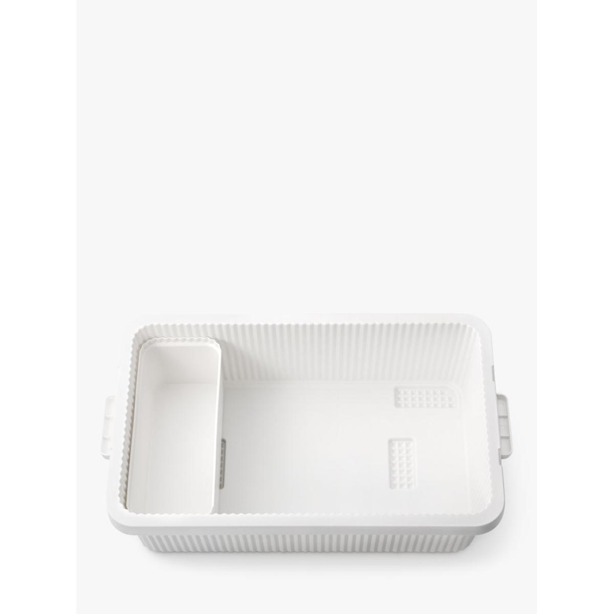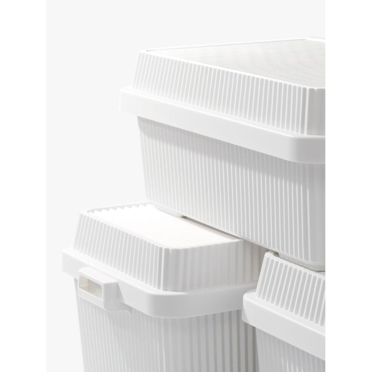 I love this stack up container because of its practical size and versatile design, making it ideal for both organised storage and clean aesthetic. It works particularly well in modern or minimalist interiors, where tidy storage solutions are key, but it can also add a sleek touch to more eclectic spaces. I recommend stacking several for a streamlined look or keeping one on hand for quick access to everyday essentials. Practical styling tips include pairing it with open shelving or a woven tray to keep a clutter-free surface, or using it inside larger cupboards to maximise storage space while maintaining a cohesive appearance. Its neutral colour and simple form ensure it blends effortlessly into various colour schemes and interior styles.