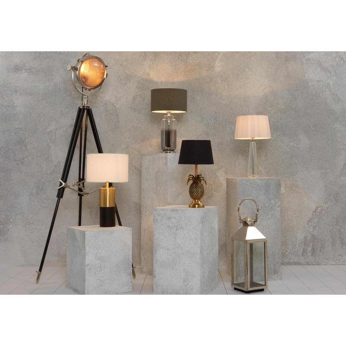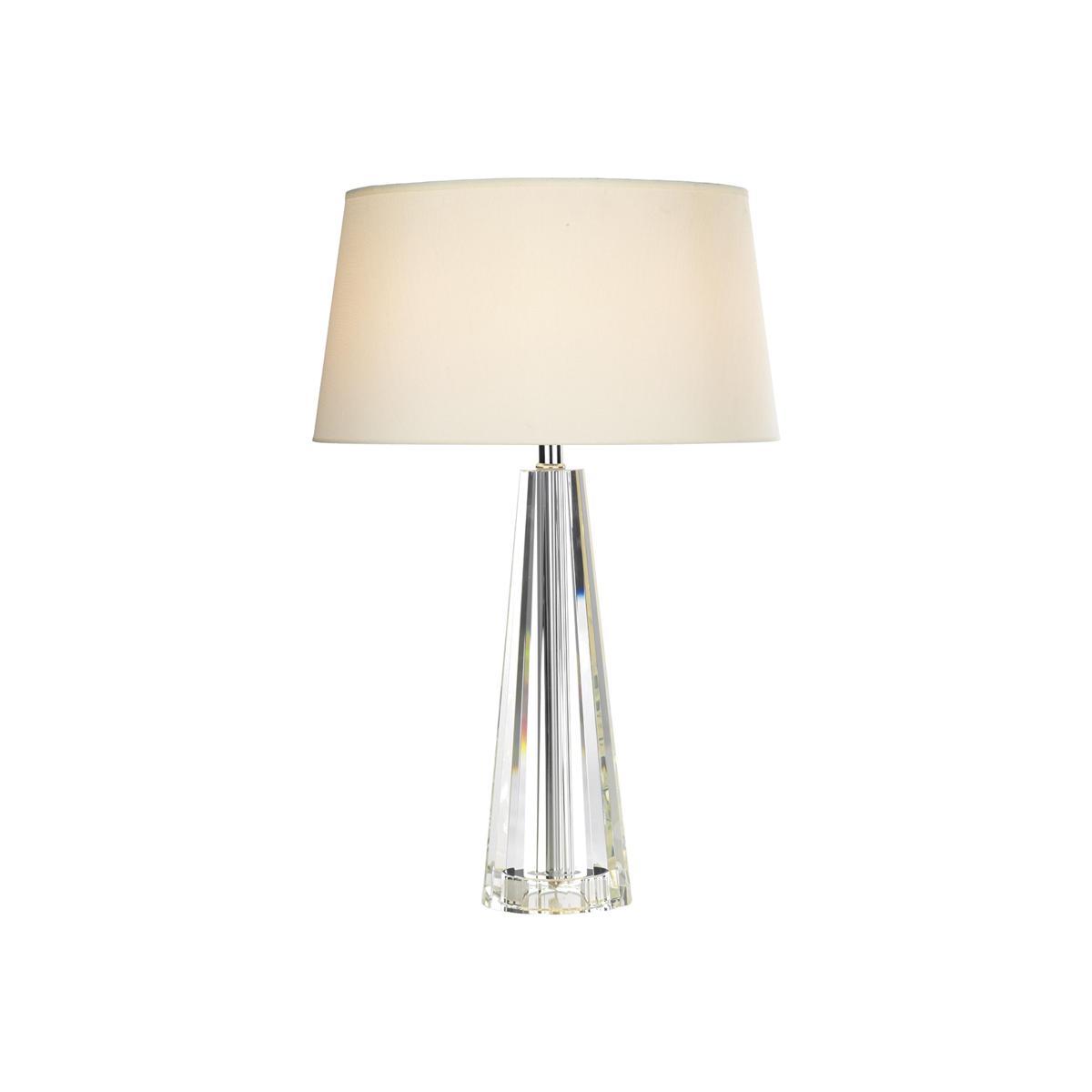 Perfect for any living space or bedroom, the Lila lamp has a clear crystal glass base and a cream shade for a soft, comforting feel. Will work well with any other theme or colours. Why you’ll love it. Attractive modern table lamp. Pointed see-through base. Tapered cream shade. Inline rocker switch for easy operation. Crafted with care for Furniture Village. What you need to know. Crystal glass base. Faux silk drum shade. 1 x 60W max ES GLS bulb recommended. Dimensions. Height: 47cm (19 in). Diameter: 30cm (12 in).