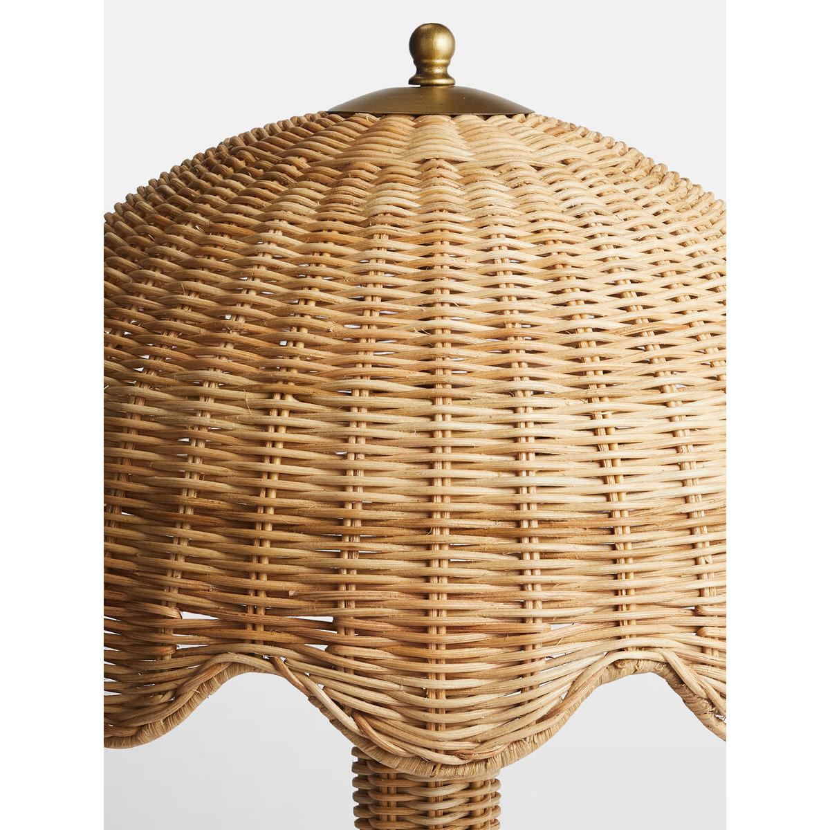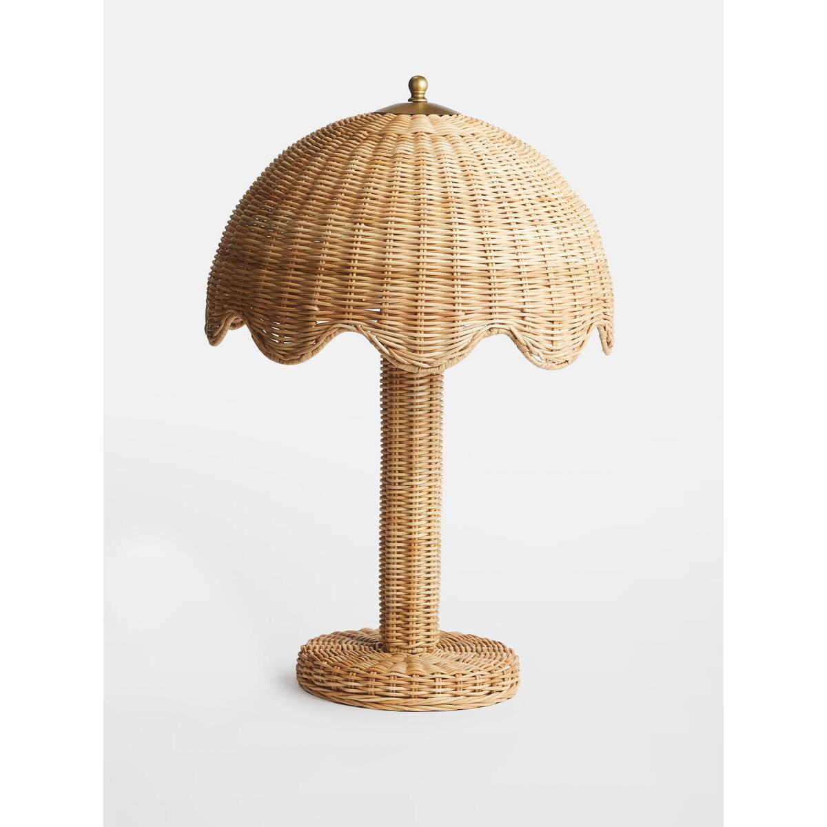 As seen in Little Beach House Malibu, the Lila table lampfeatures a scalloped silhouette and domed shade. It is entirelywrapped in natural rattan, and softened with a scalloped rim thatmimics the motion of the Californian coastline. Wrapped in rattan. Scalloped rim. Antique brass details. 2 / E27 / 60W MAXIMUM. Inspired by Little Beach House Malibu.