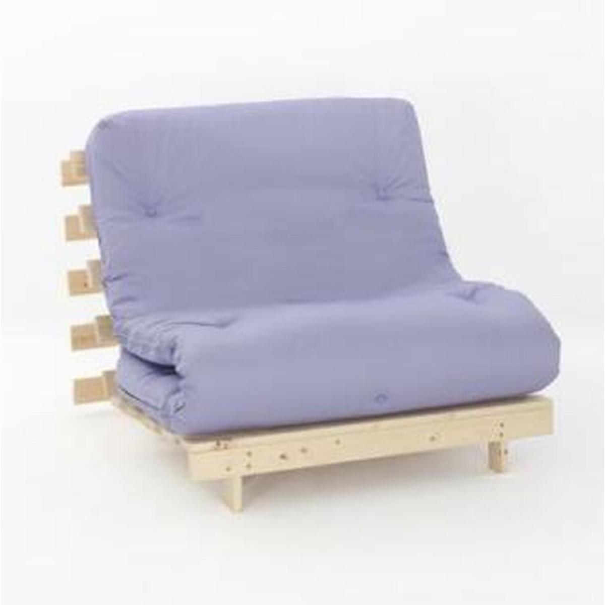 This great value, easy to use futon is a great addition to any room. A comfortable, compact solution for that unexpected guest. The base is a solid, wooden pine frame. It is sturdy, practical and can be painted easily, to match any room. The premium luxury mattress is tufted and made from an extra thick quality woven filling with a non-removable, in a 100% cotton drill cover. We fill the mattress layers of felt, wool and polyester blends, extra layers have been added for that premium, extra-thick comfort. The extra thick mattress comes with matching coloured buttons. In seconds the futon goes from a comfortable 1 person sofa to a full-size single (3ft) bed and vice versa. This futon is ideal for any occasion, use a practical chair or a comfy bed.