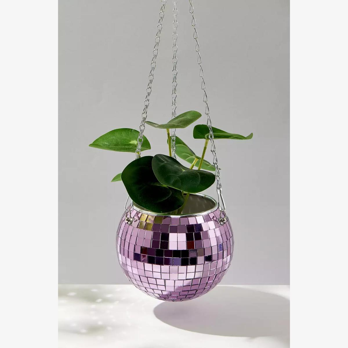 Bring botanicals into your disco space with this mirror ball planter. The hanging plant pot features a disco ball design with a chain with a hook for effortless hanging and a hollowed-out space to store a plant inside. **Content + Care** \- Plastic \- Wipe clean