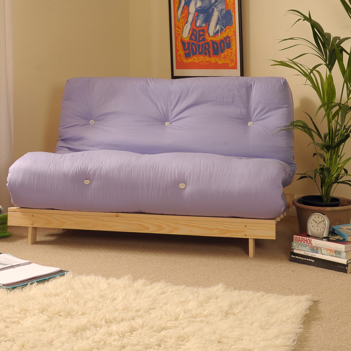 This futon is a great value, easy to use futon is a great addition to any room. A comfortable, compact solution for that unexpected guest. The base is a solid, wooden pine frame. It is sturdy, practical and can be painted easily, to match any room. The futon mattress is filled here by us with quality is woven filling of natural materials including felt and wool, with non-removable cover in 100% cotton drill. The mattress is made especially for a comfortable sleep. Each mattress is finished to a high standard, looking great in your chosen colour, with white daisy tufts on every single one. In seconds the futon goes from a comfortable 2 seater sofa to a full-sized double bed and vice versa. Great for any unexpected guests, this futon provides the perfect solution for sleepovers. It is ideal for bedrooms and conservatories. The base is ready assembled, simply screw on the feet (included) and pop on the mattress.