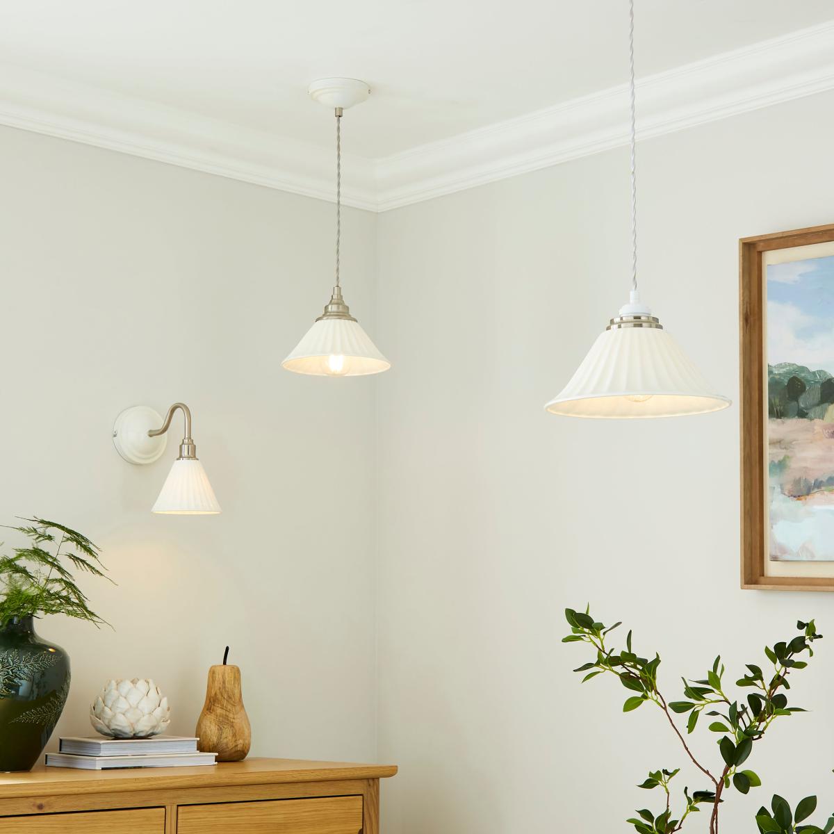 I love this wall light’s subtle ribbed design and clean white finish - it offers a timeless look that works well in a variety of interiors. It’s particularly suited to more pared-back, modern spaces or those with a coastal or Scandinavian vibe, where its understated elegance can shine. Practical styling tips include placing it beside a mirror or artwork to add warmth and visual interest, or using a pair of them on either side of a bed or console table for symmetry. Its versatile design allows it to seamlessly blend into both contemporary and traditional settings, making it a reliable choice for any wall lighting scheme.